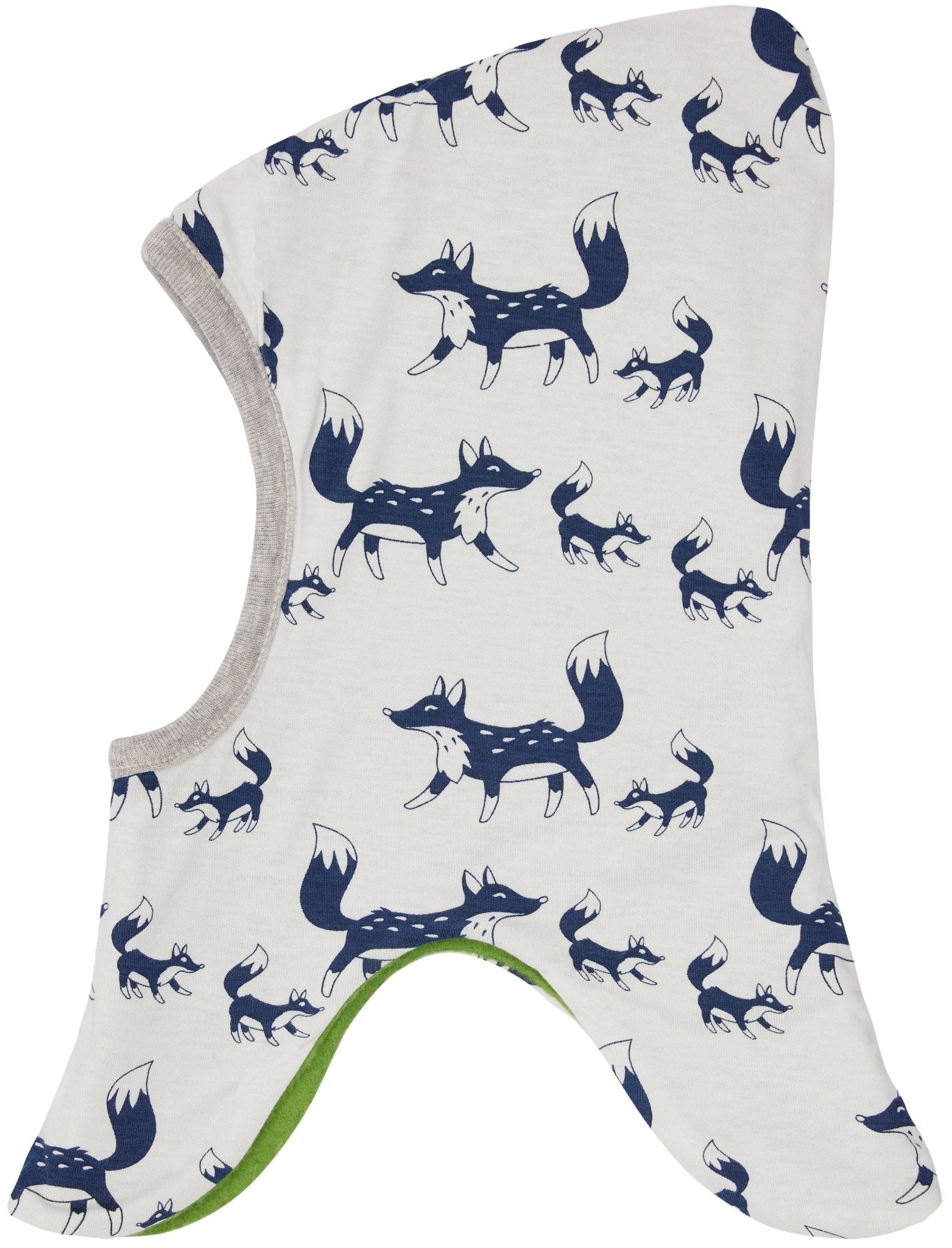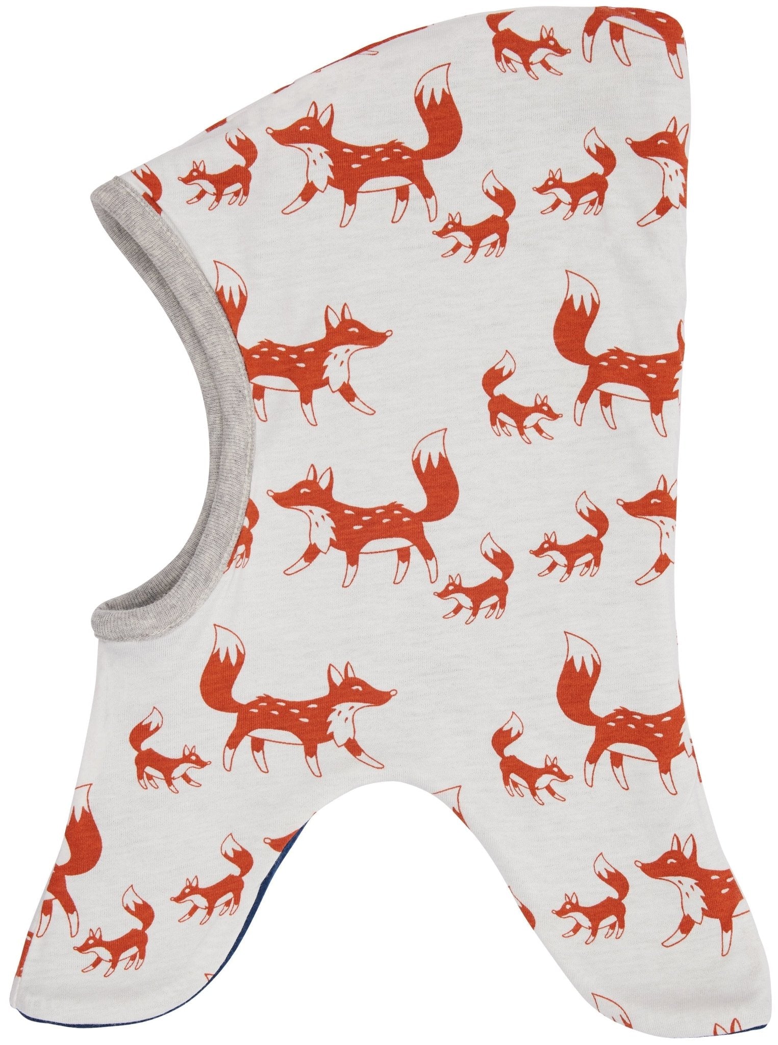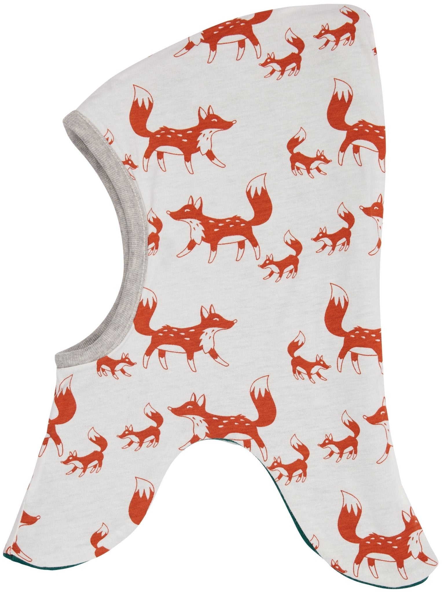 Weiche Schlupfmütze aus Baumwoll-Fleece zum Wenden. Eine Seite ist aus bedrucktem Jersey, die andere Seite aus Fleece gefertigt. Vorne Logo-Etikett, hinten mit Fähnchen. Made in Portugal. Waschbar bei 30°C.