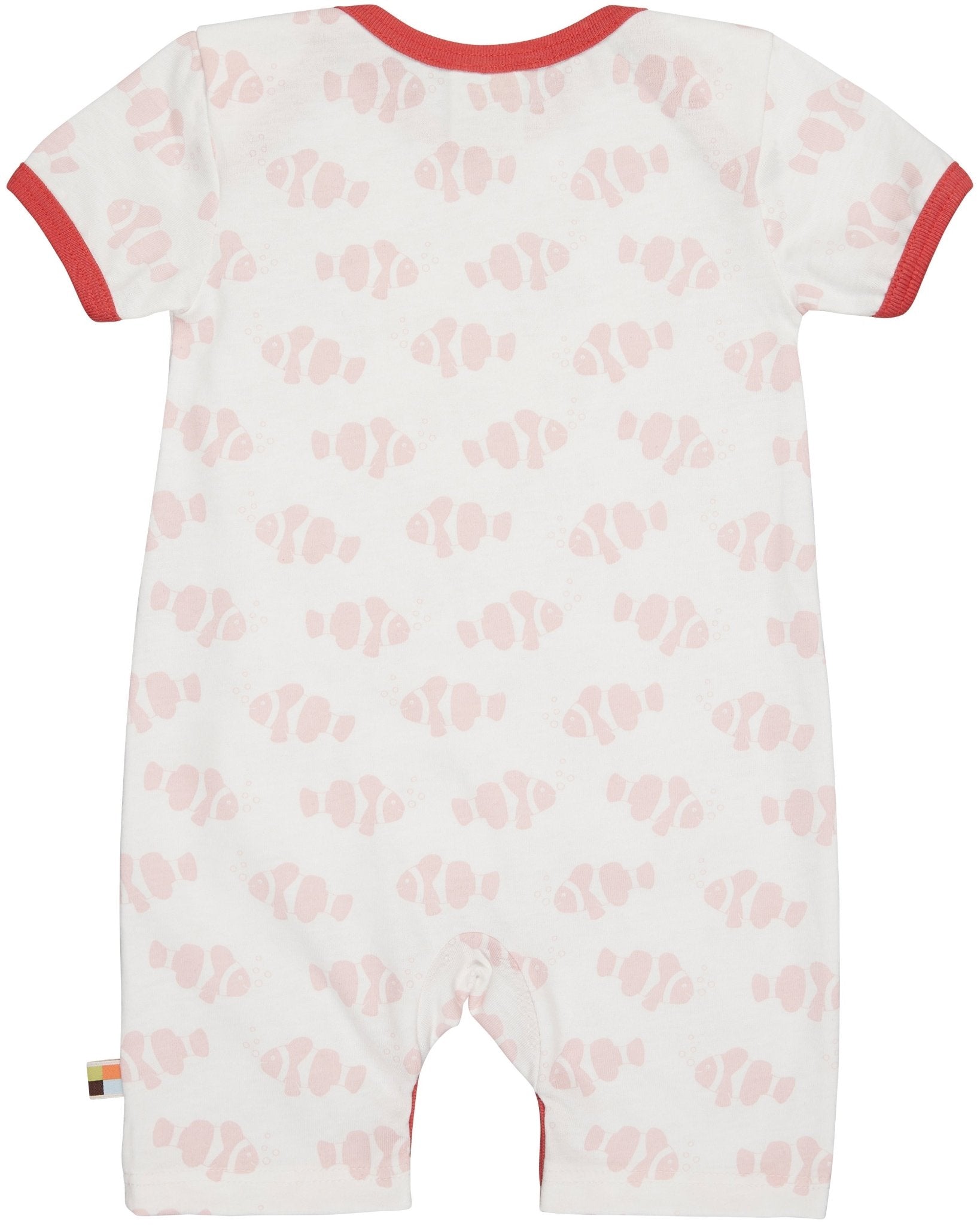 Spieler aus ungefärbtem weichem Single Jersey mit ganzflächig aufgedrucktem Tiermotiv (Wasserbasierender Druck). Alle Kanten sind mit Feinripp in Kontrastfarbe eingefasst. Schrittverschluss mit Druckknöpfen. Fähnchen an der Seitennaht. Made in Hungary. Waschbar bei 30°C.