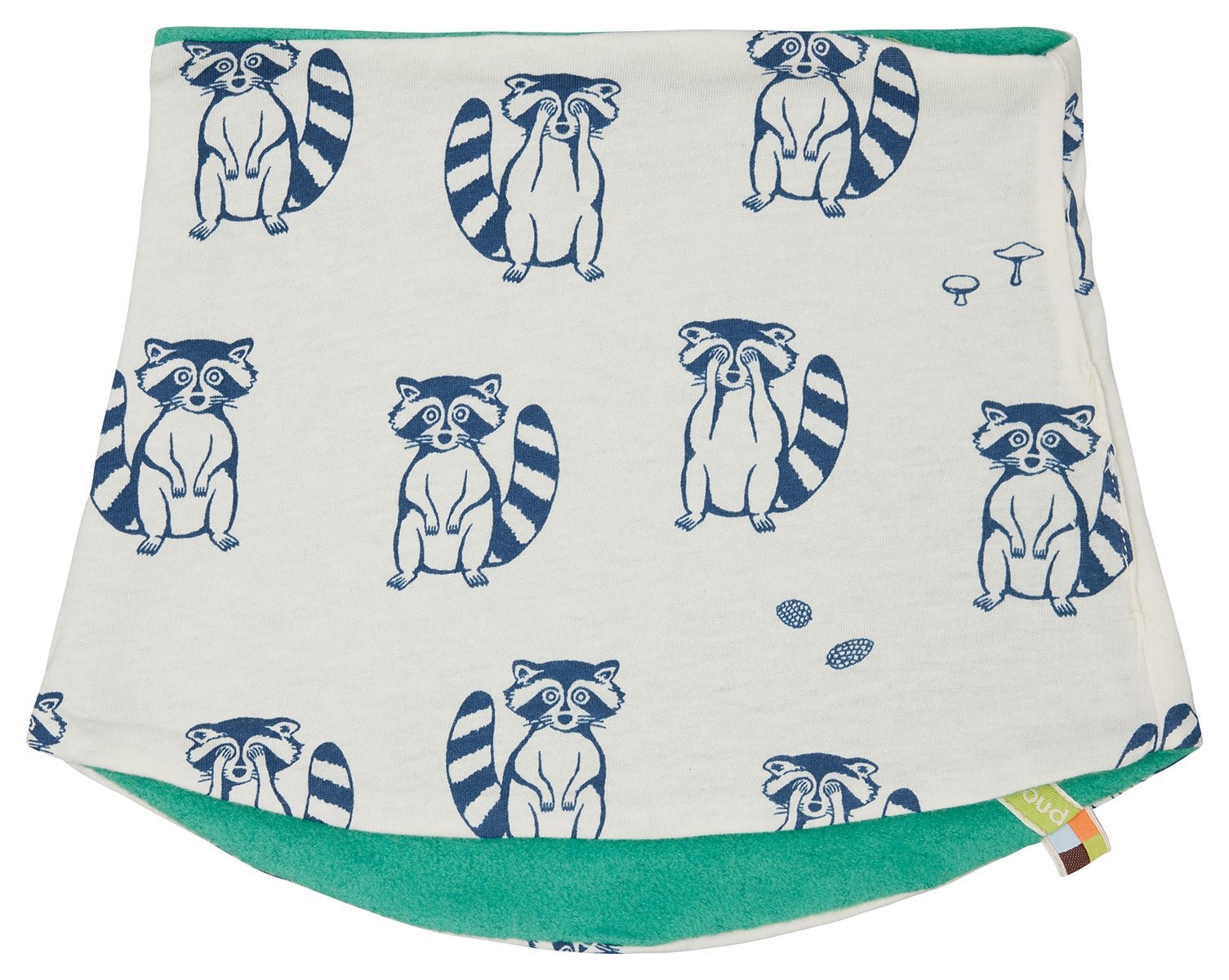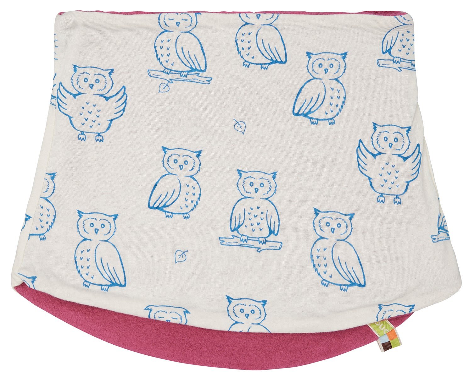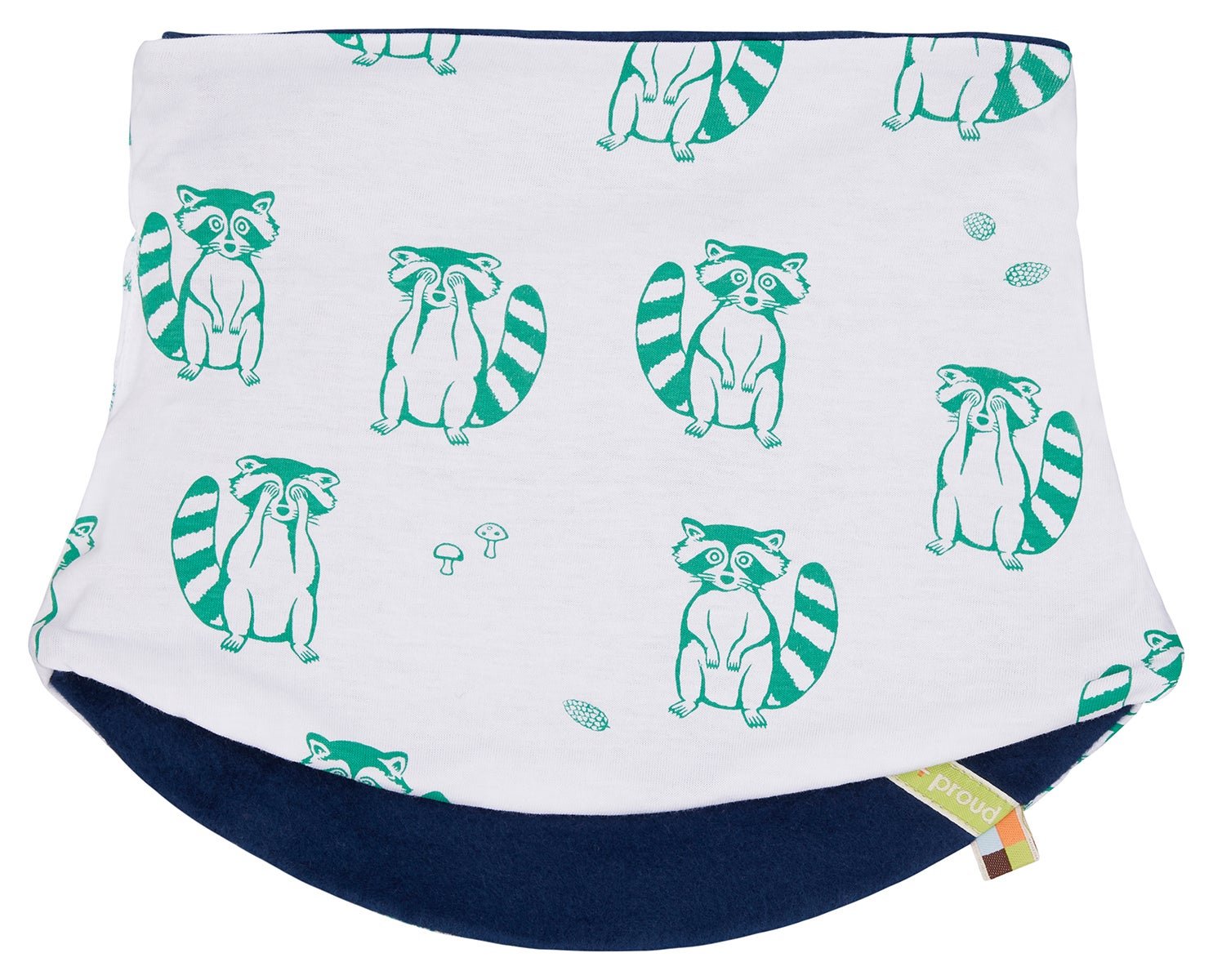 Kuscheliger Wende-Schlauchschal aus Baumwoll-Fleece. Eine Seite ist aus bedrucktem Jersey, die andere Seite aus weichem Fleece gefertigt. Vorne Logo-Etikett mit Fähnchen. Made in Türkiye. Waschbar bei 30°C