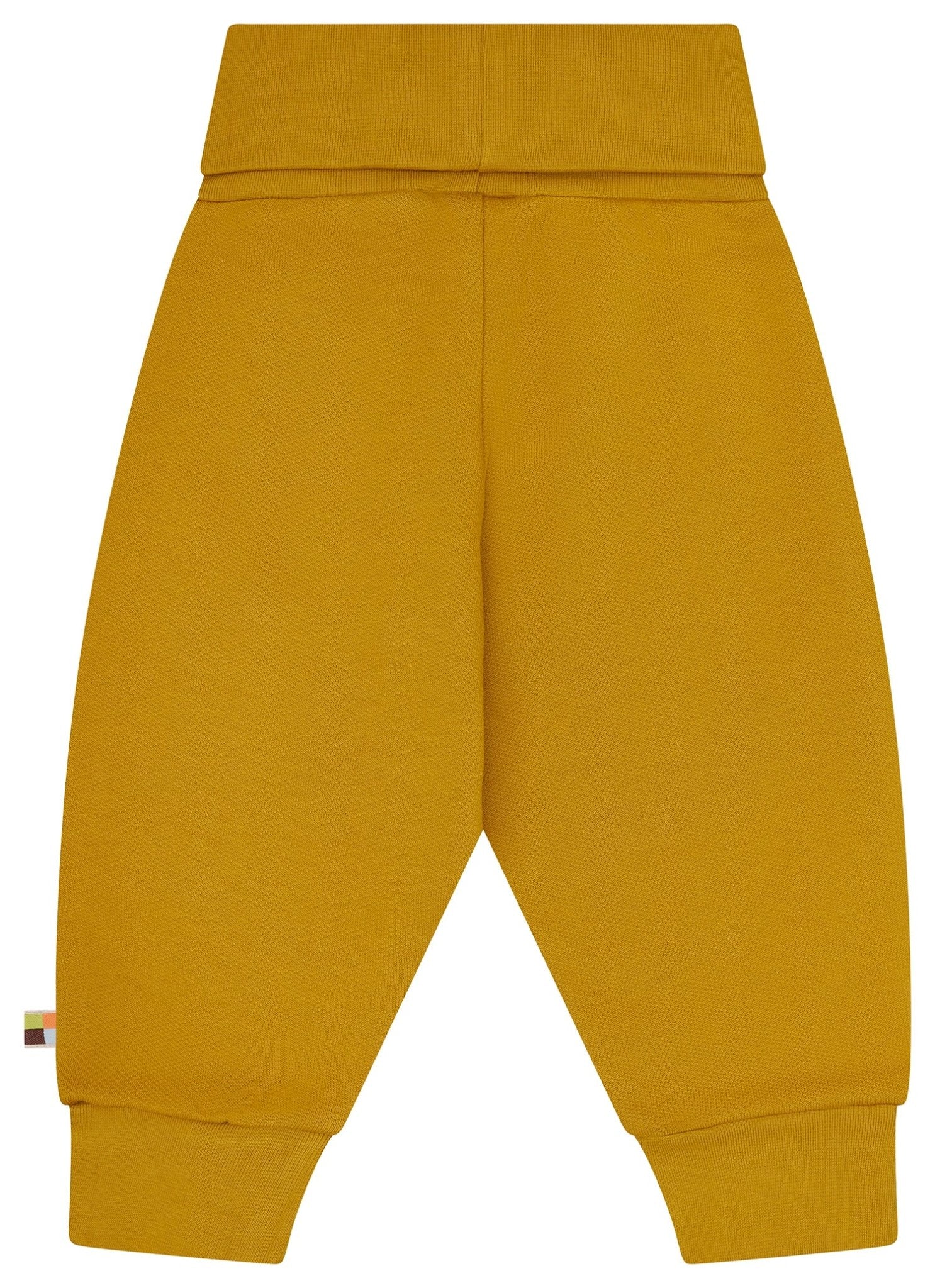 Diese kuschelig weiche Sweat-Hose aus Bio-Baumwolle ist ein echtes Wohlfühlteil für die Allerkleinsten. Die angeraute Innenseite hält angenehm warm und liegt sanft auf empfindlicher Babyhaut. Der extra weiche Nabelbund schmiegt sich sanft an den Bauch, ohne einzuengen – perfekt für Neugeborene und kleine Entdecker. Elastische Bündchen am Saum sorgen für guten Sitz, auch beim Strampeln. Ein kleines Fähnchen an der Seitennaht rundet das liebevolle Design ab. Hergestellt in Europa, maschinenwaschbar bei 30°C – ideal für jeden Tag.
