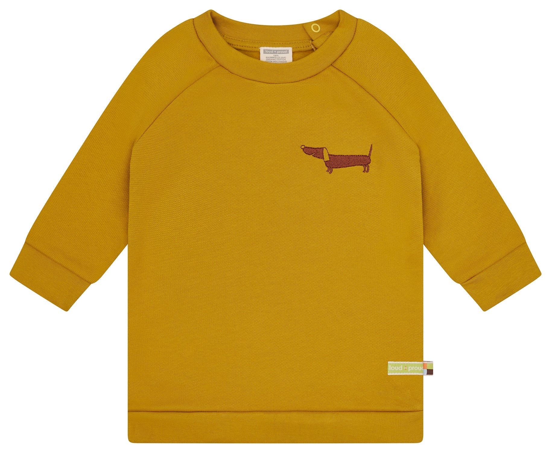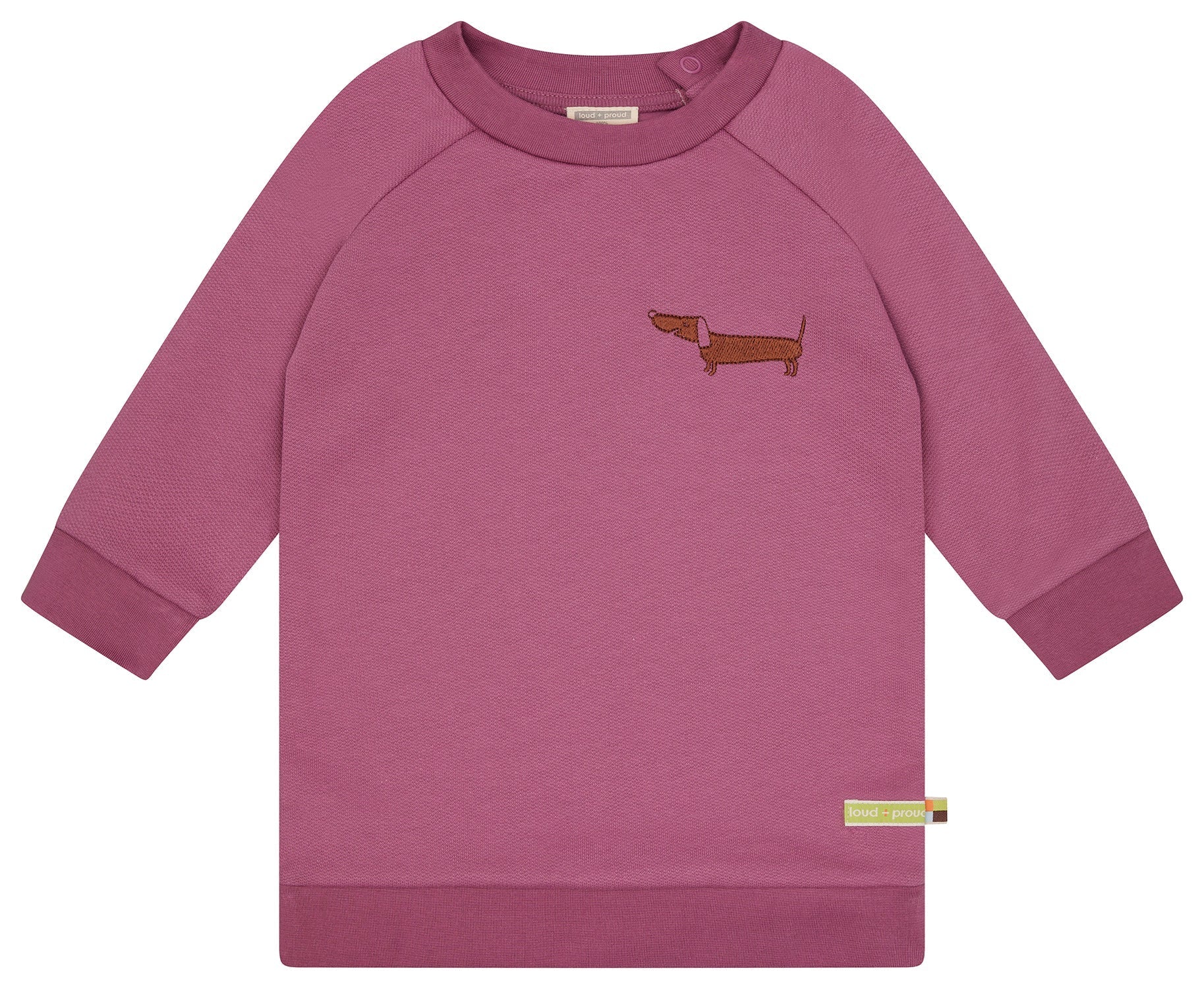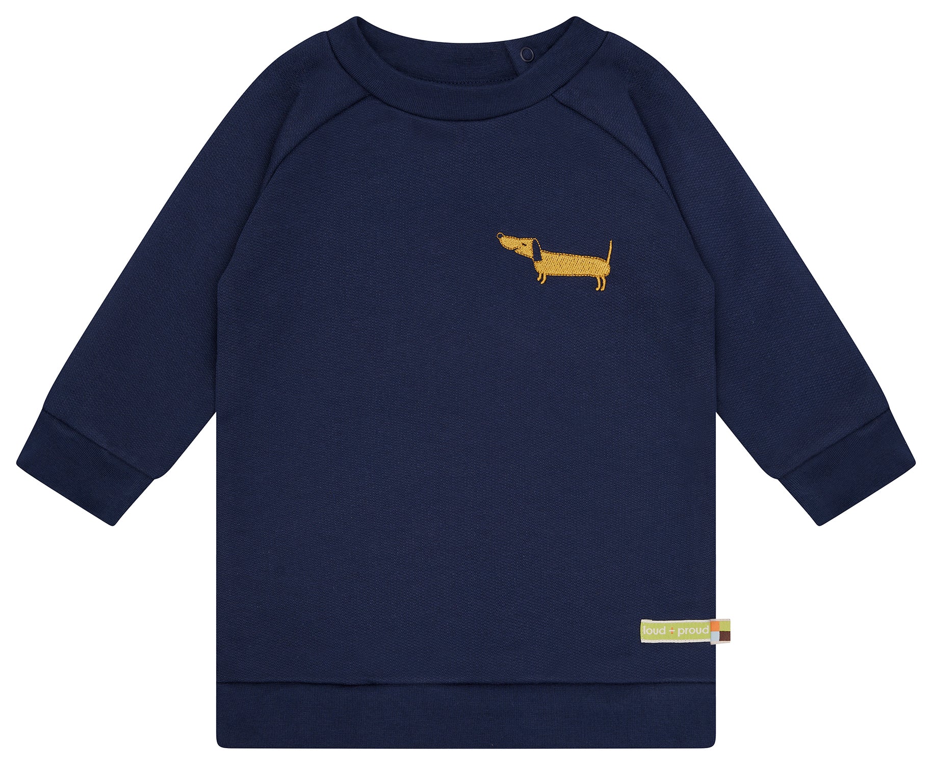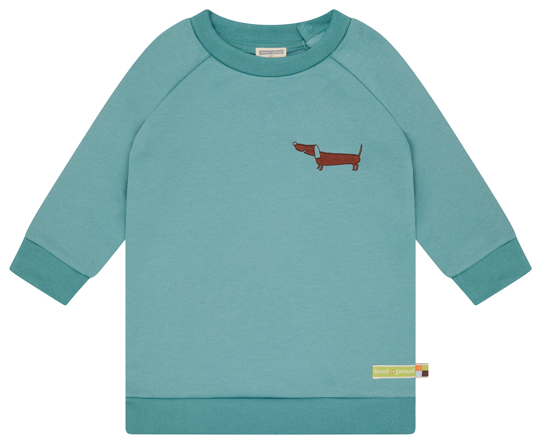 Dieses kuschelweiche Sweatkleid aus Bio-Baumwolle ist ideal für kühle Tage und kleine Dackel-Fans. Die angeraute Innenseite hält angenehm warm, während elastische Rippbündchen an Ärmeln und Saum für optimalen Sitz sorgen. Eine liebevolle Dackel-Stickerei auf der Vorderseite bringt verspielten Charme ins Design. Die aufgesetzte Tasche bietet Platz für kleine Schätze. Für einfaches Umziehen ist das Kleid bis Größe 86/92 mit Druckknöpfen an der Schulter ausgestattet. Mit Fähnchen an der Seitennaht und gefertigt in Europa – maschinenwaschbar bei 30°C. Perfekt für Alltag und Kita.