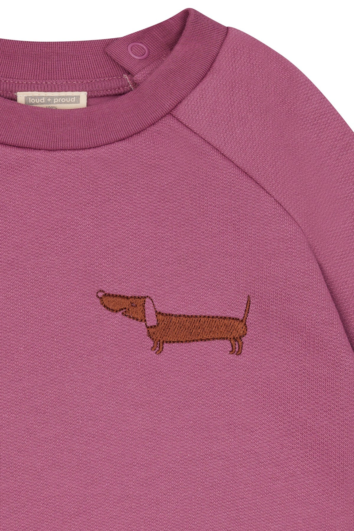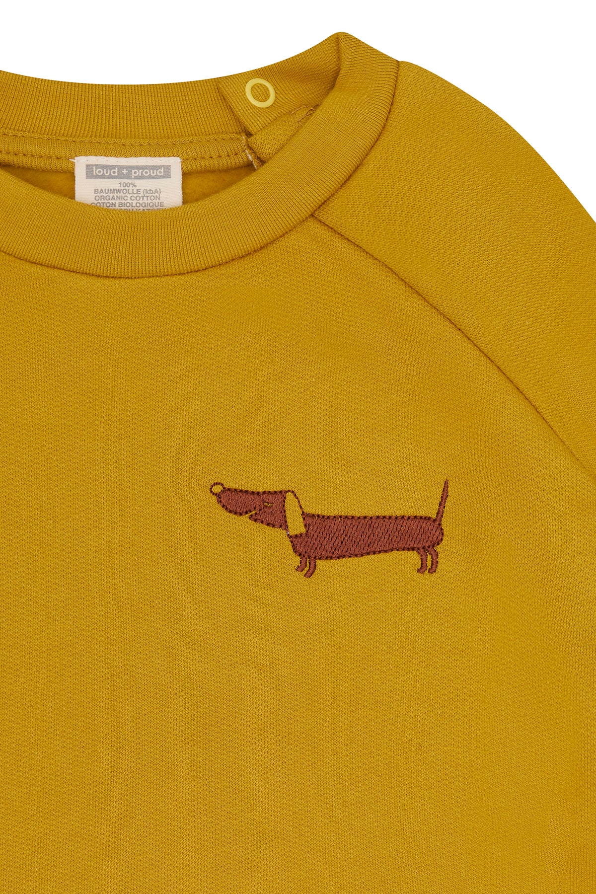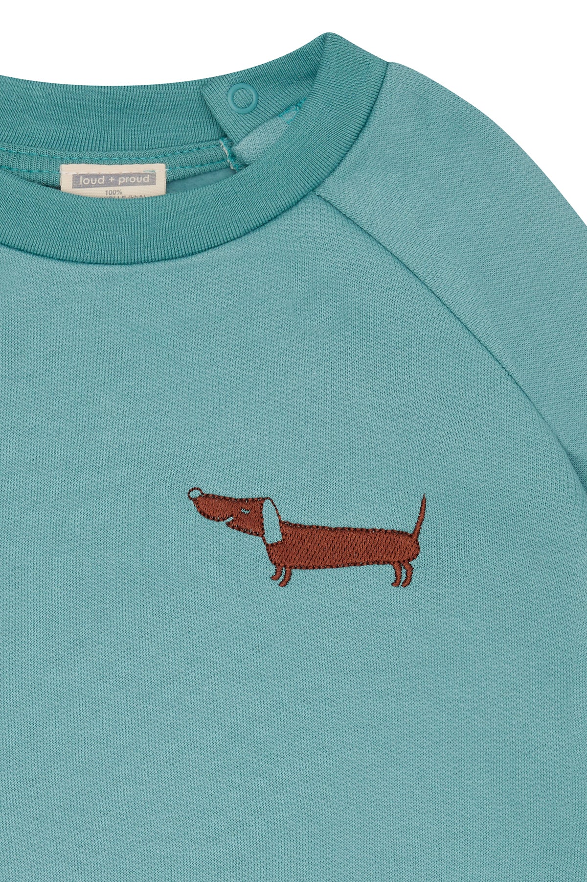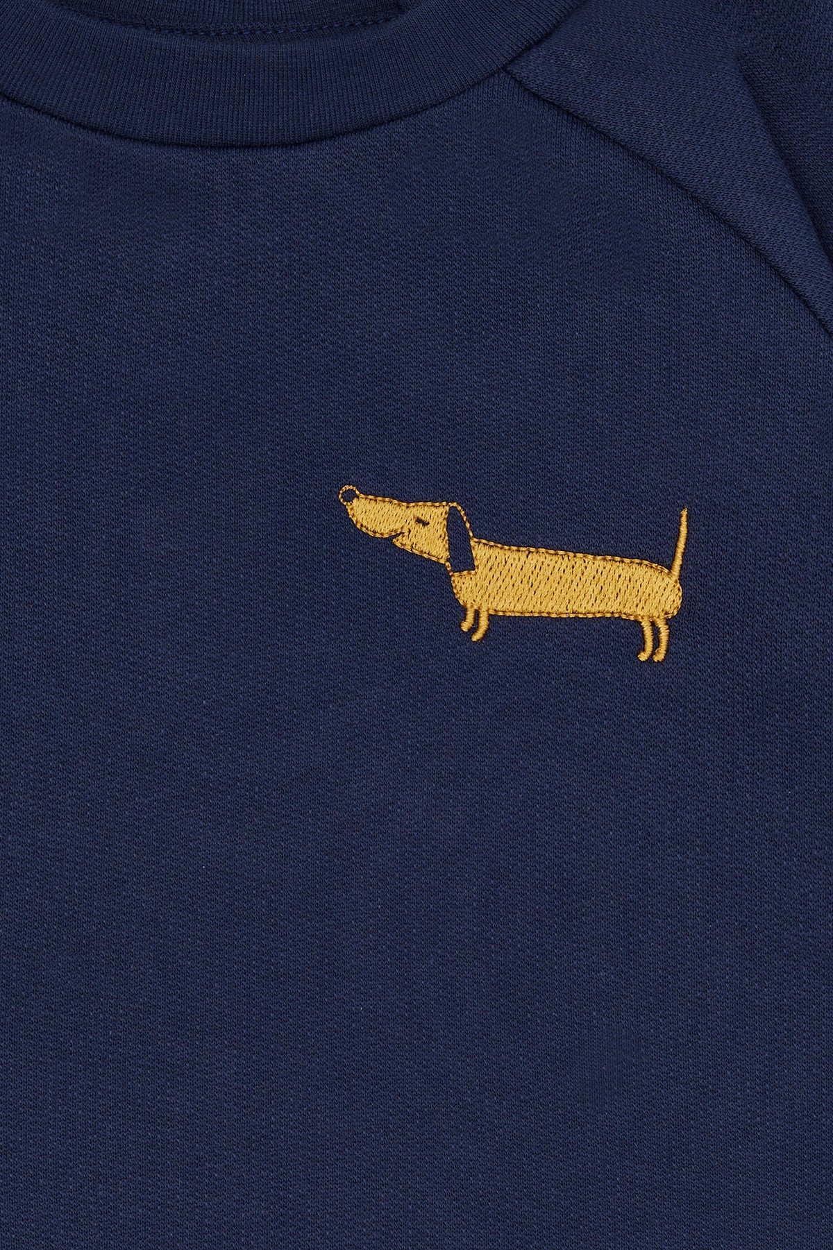 Dieses kuschelweiche Sweatkleid aus Bio-Baumwolle ist ideal für kühle Tage und kleine Dackel-Fans. Die angeraute Innenseite hält angenehm warm, während elastische Rippbündchen an Ärmeln und Saum für optimalen Sitz sorgen. Eine liebevolle Dackel-Stickerei auf der Vorderseite bringt verspielten Charme ins Design. Die aufgesetzte Tasche bietet Platz für kleine Schätze. Für einfaches Umziehen ist das Kleid bis Größe 86/92 mit Druckknöpfen an der Schulter ausgestattet. Mit Fähnchen an der Seitennaht und gefertigt in Europa – maschinenwaschbar bei 30°C. Perfekt für Alltag und Kita.