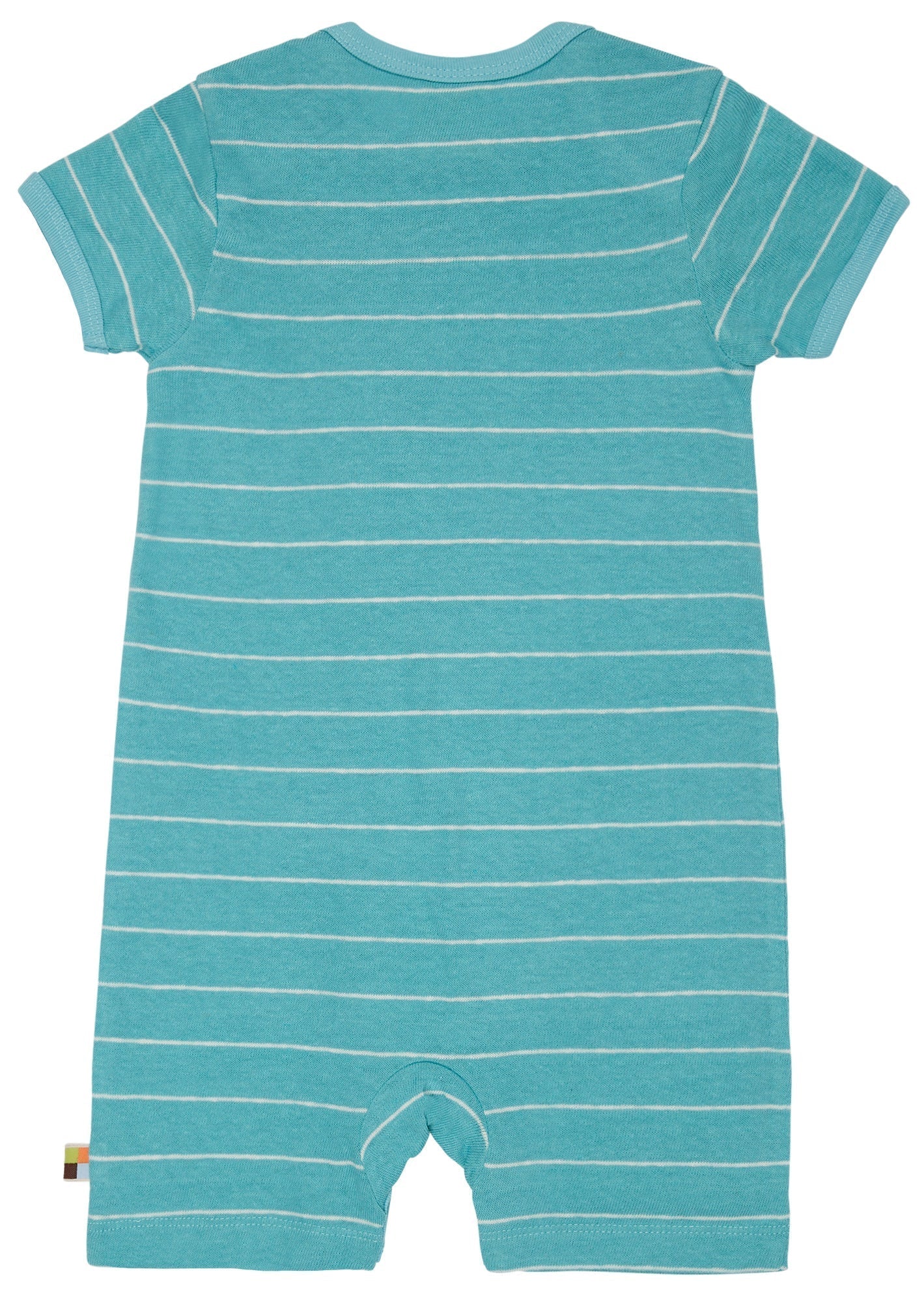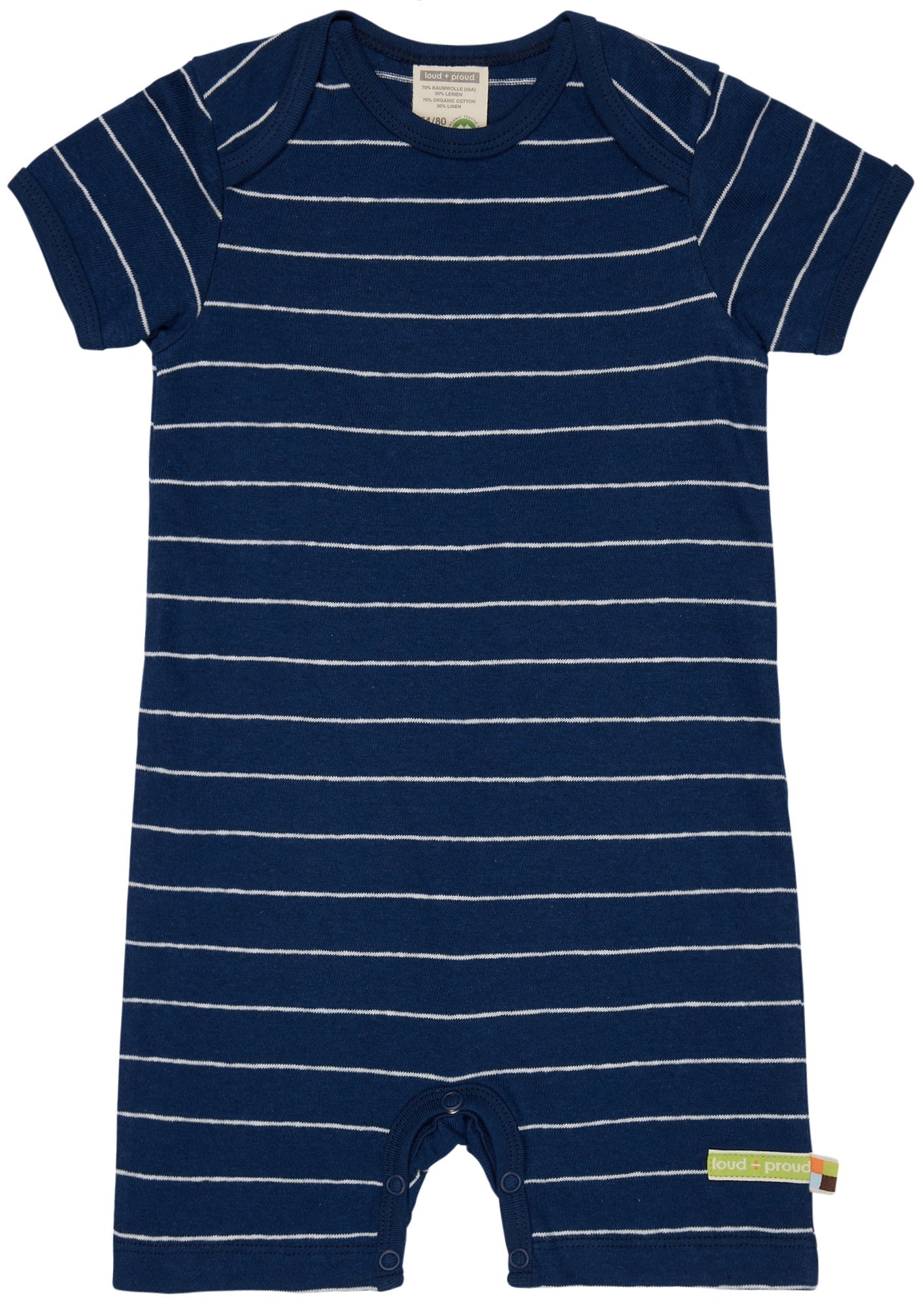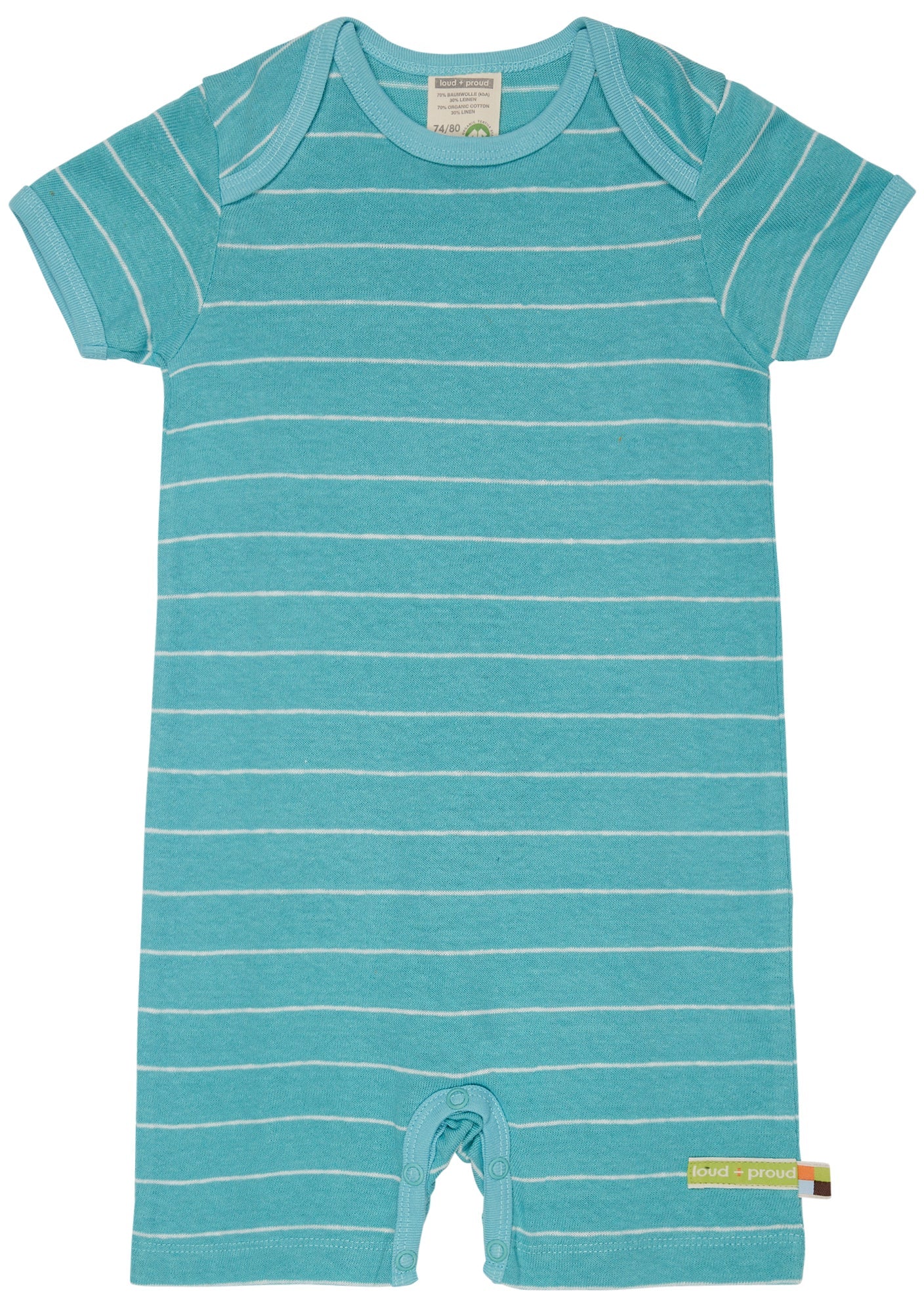 Gestreifter Spieler mit kühlendem Leinen. Alle Kanten sind mit Feinripp in Kontrastfarbe eingefasst. Schrittverschluss mit Druckknöpfen. Fähnchen an der Seitennaht. Made in Portugal. Waschbar bei 30°C.