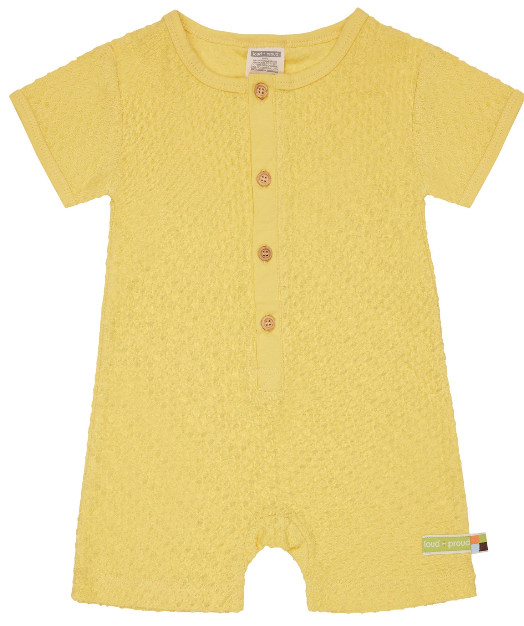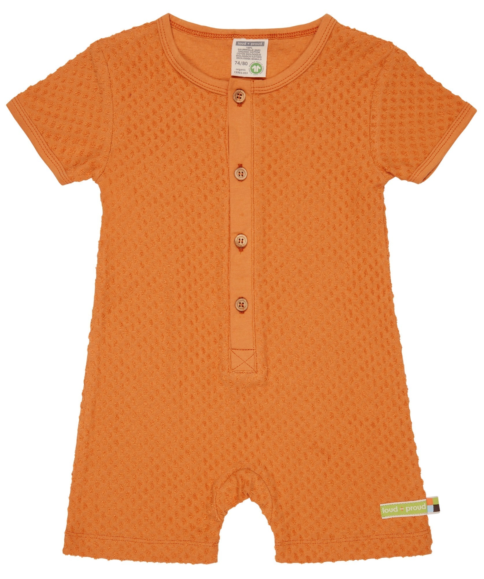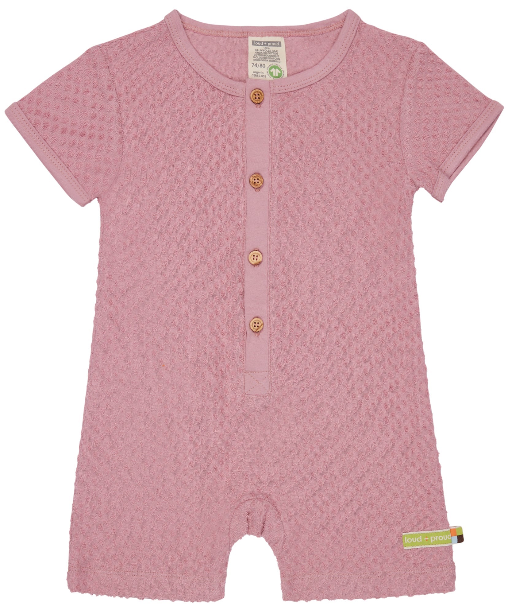 Spieler aus Frottee mit Punkte-Muster (Jacquard). Vorne mit Knopfleiste und Knöpfen aus Holz. Alle Kanten sind mit Single Jersey eingefasst. Fähnchen und Logo-Etikett an der Seitennaht. Made in Portugal. Waschbar bei 30°C