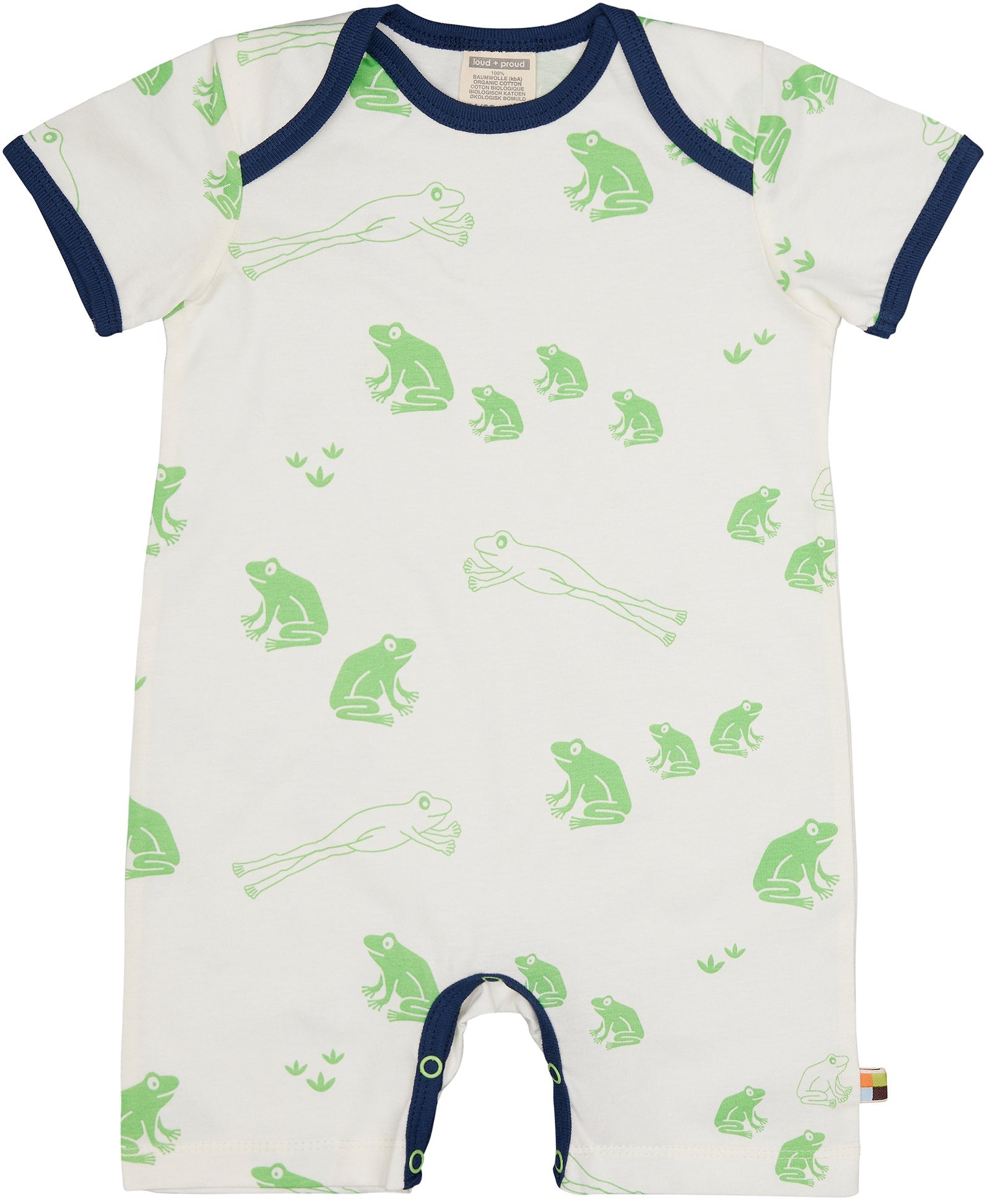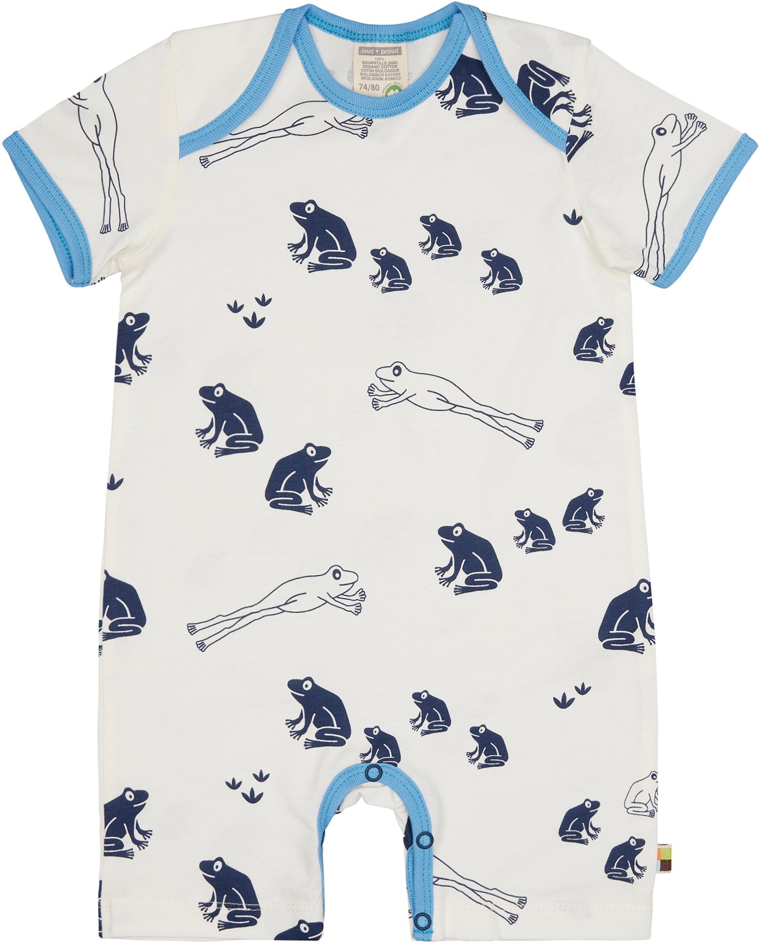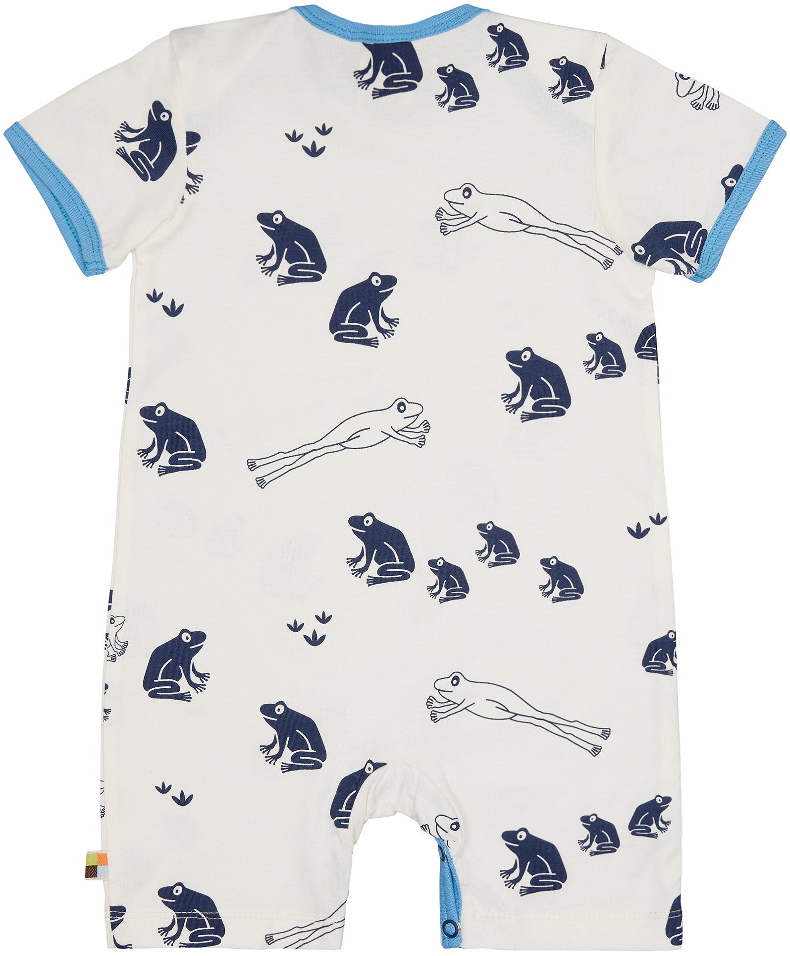 Spieler aus ungefärbtem weichem Single Jersey mit ganzflächig aufgedrucktem Tiermotiv (Wasserbasierender Druck). Alle Kanten sind mit Feinripp in Kontrastfarbe eingefasst. Schrittverschluss mit Druckknöpfen. Fähnchen an der Seitennaht. Made in Portugal. Waschbar bei 30°C.