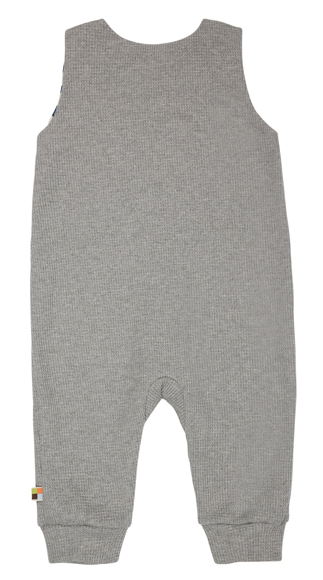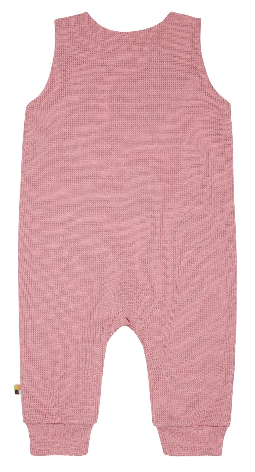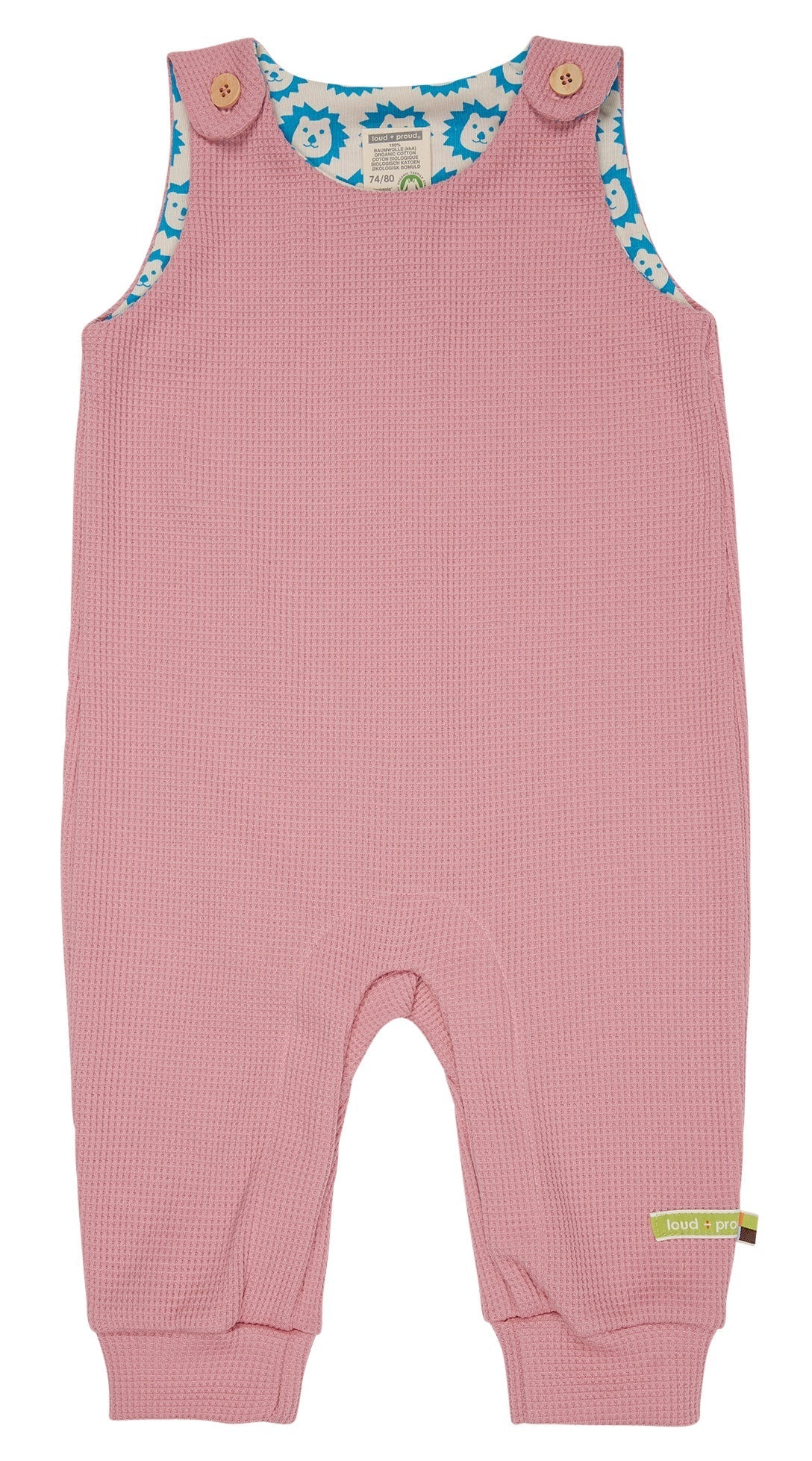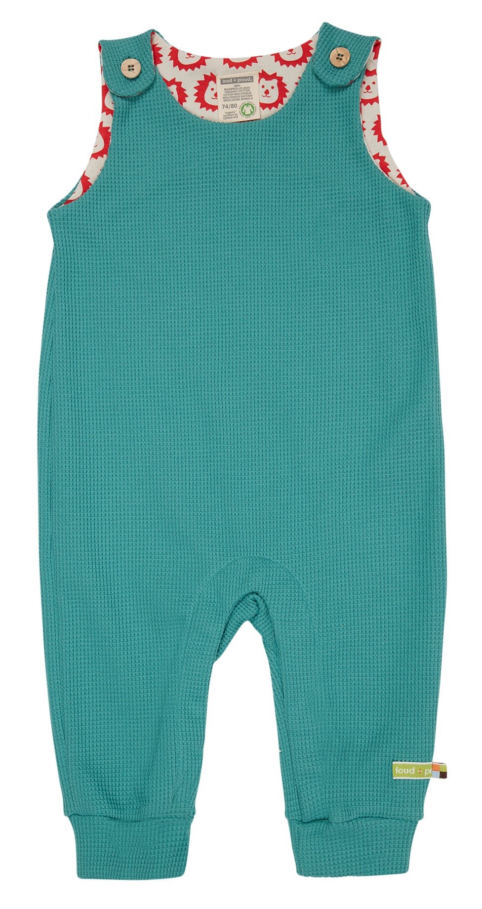 Strampler in weicher Waffel-Struktur. An den Schultern Knöpfe zum An- und Ausziehen. Der Brustbereich ist innen mit bedrucktem Jersey abgefüttert. Zum bequemen Wickeln kann die Schrittnaht mit Druckknöpfen geöffnet und verschlossen werden. Logo-Etikett mit Fähnchen an der Seitennaht. Made in Germany. Waschbar bei 30°C.
