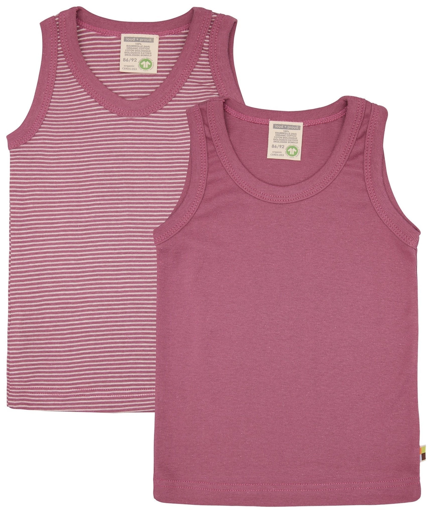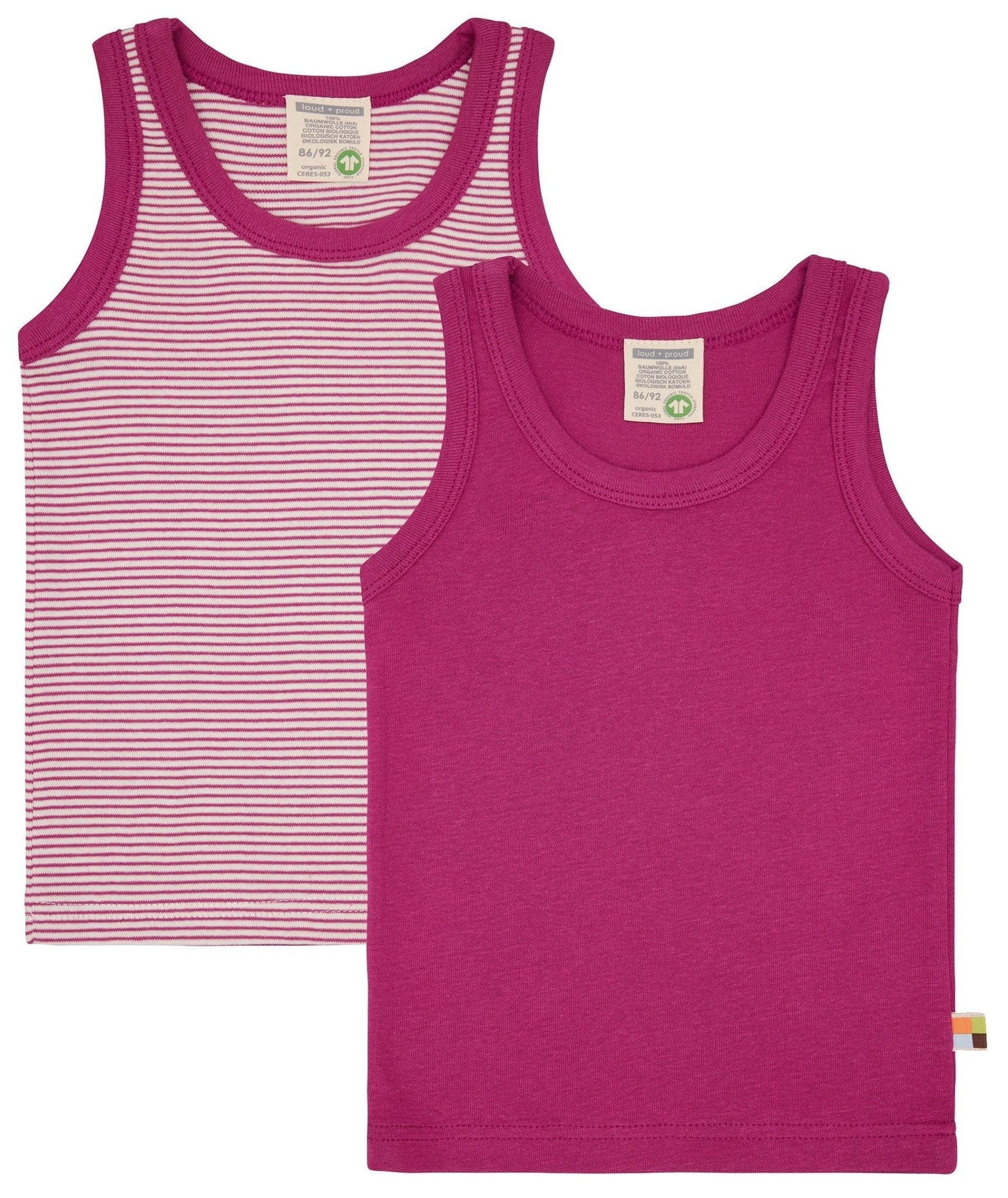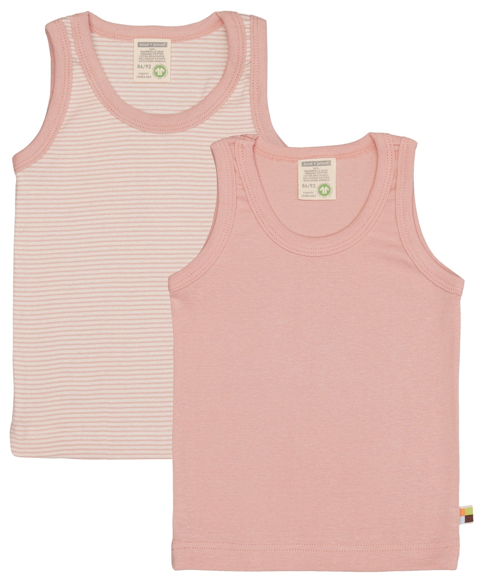 Doppelpack Unterhemden aus weichem Feinripp mit Bündchen an Halsausschnitt und Armöffnungen. Fähnchen an der Seitennaht. Made in Hungary. Waschbar bei 30°C.