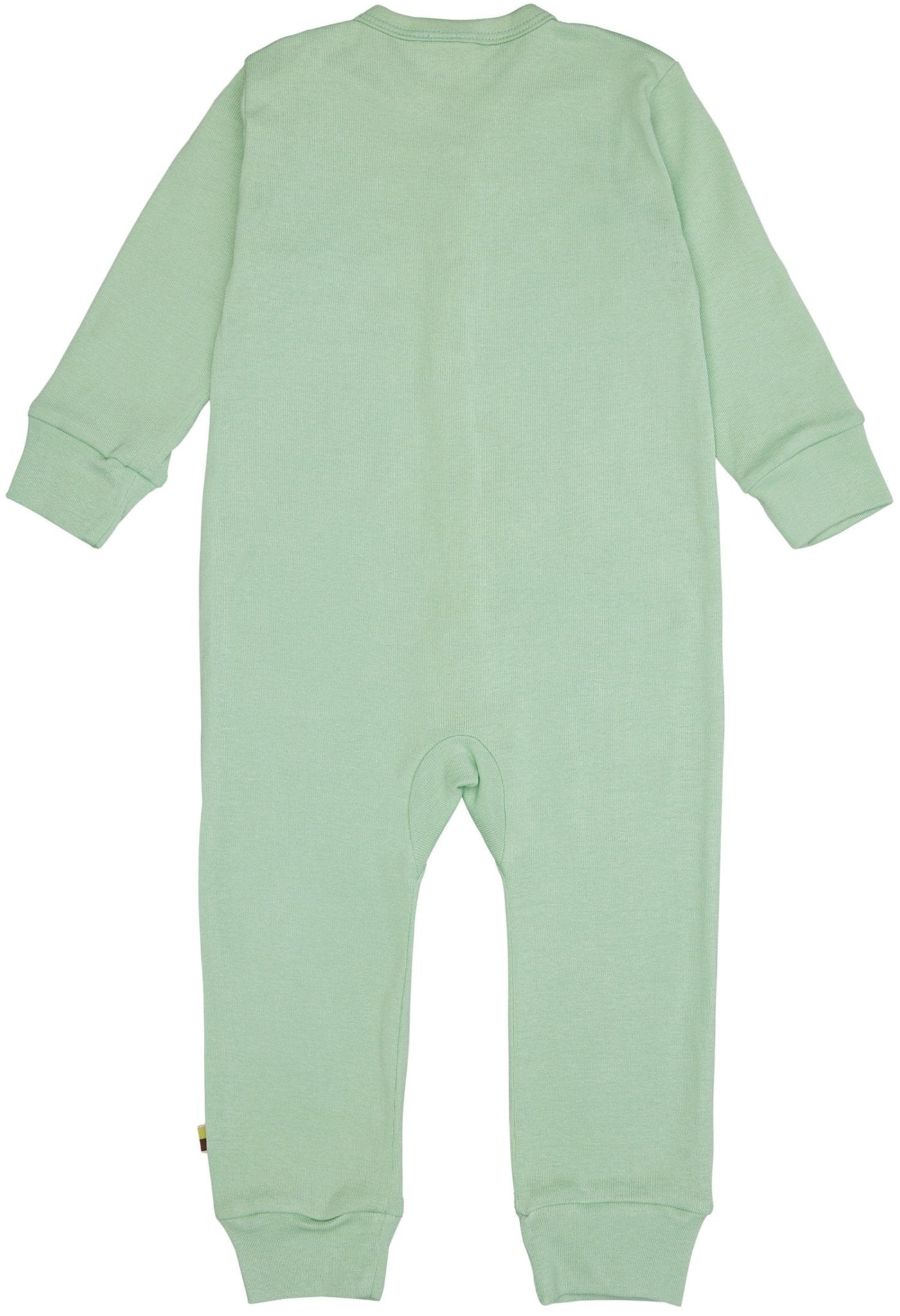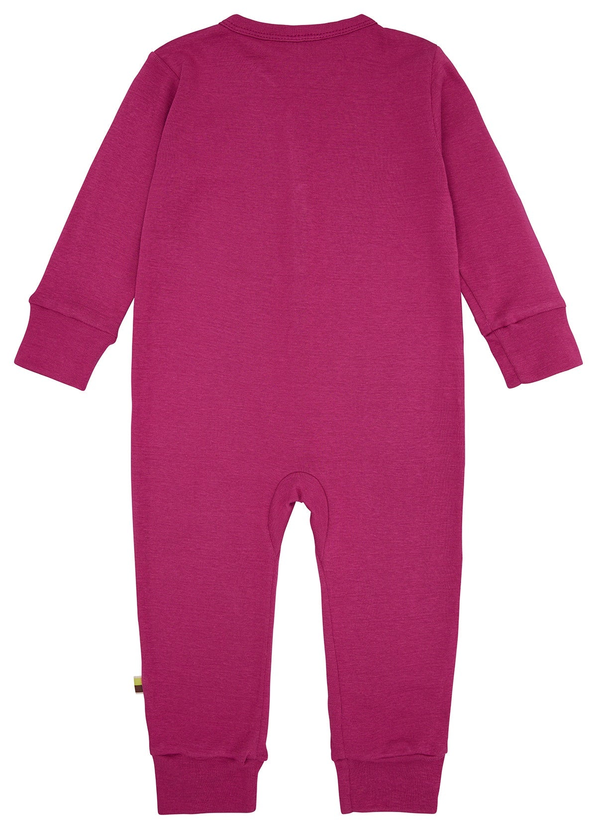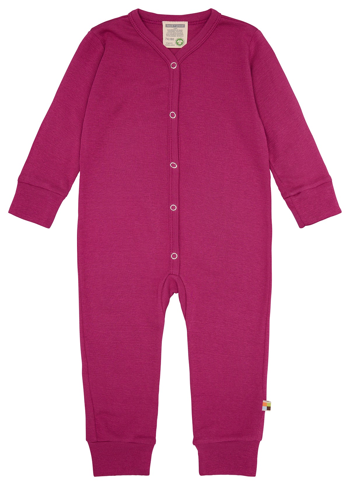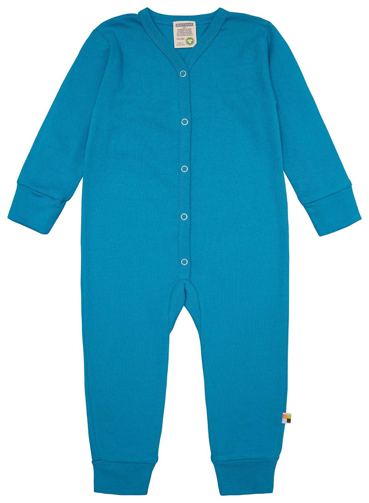 Schlafoverall aus weichem Feinripp. Lange Ärmel und lange Beine mit Bündchen. Druckknöpfe vorne, im Schritt mit Zwickel. Fähnchen an der Seitennaht. Made in Hungary. Waschbar bei 30°C.