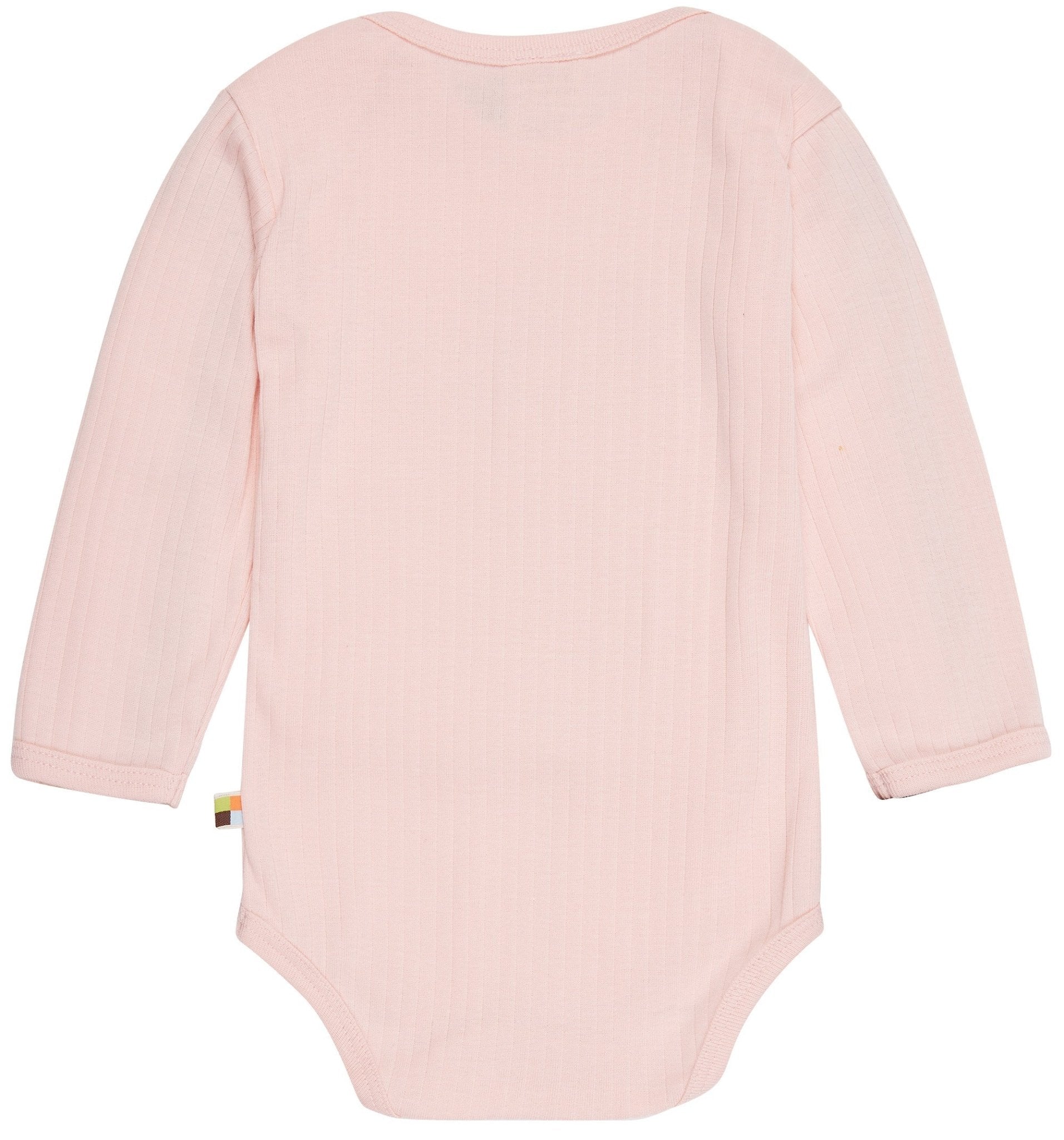 Long-sleeved bodysuit with a print at the front. Crotch closure with two snap fasteners. Flag on the side seam. Made in Hungary. Washable at 30°C.