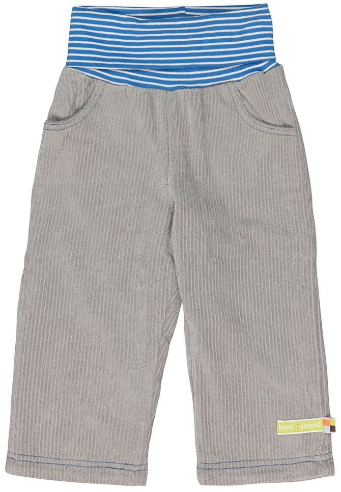 Pants made of stretch corduroy with a warm jersey lining. Soft turn-up waistband made of fine rib with elastane. Front pockets. All seams are topstitched in a contrasting color. A back pocket on the right back panel. Logo label with flag on the left side seam. Washable at 30°C. Made in Portugal.