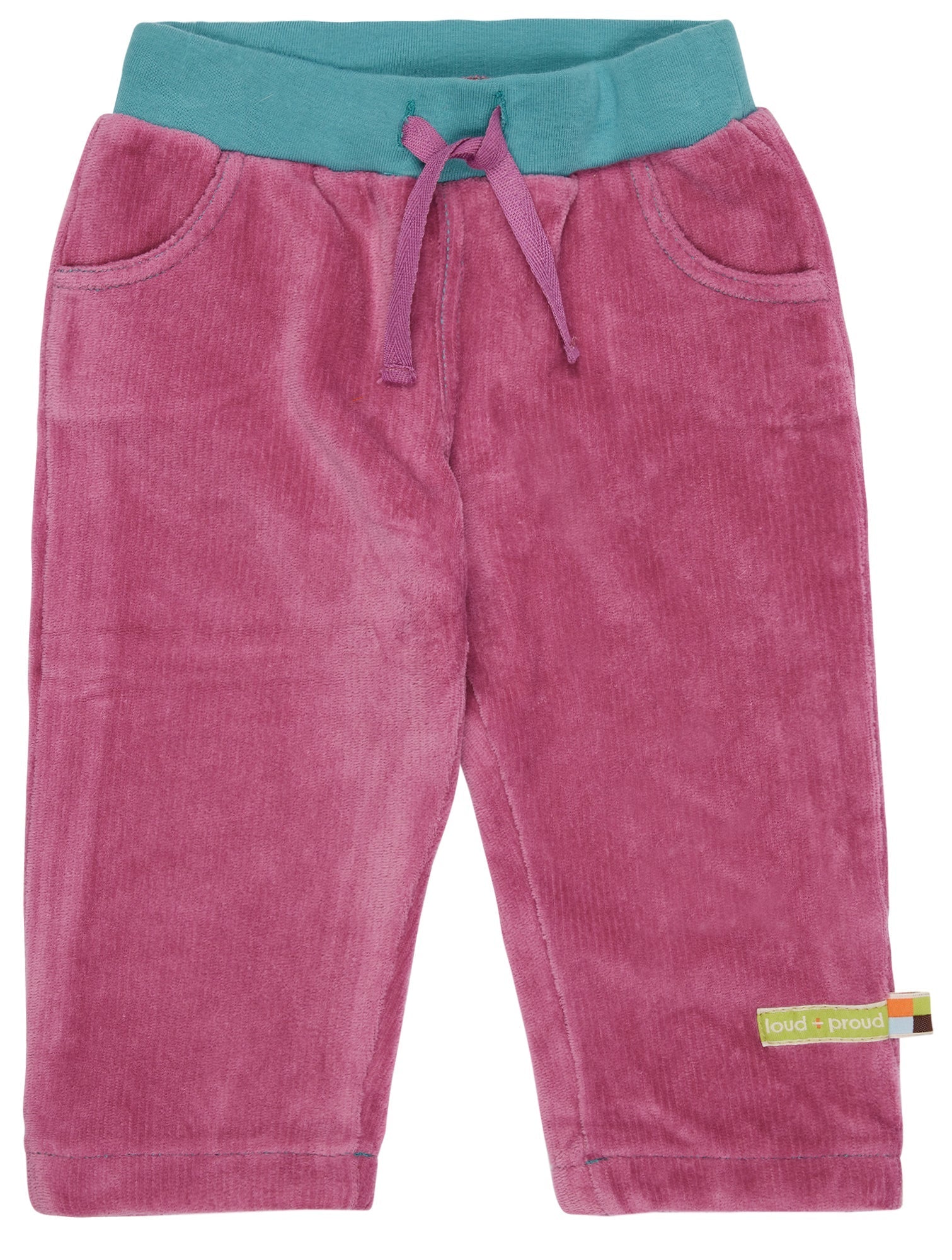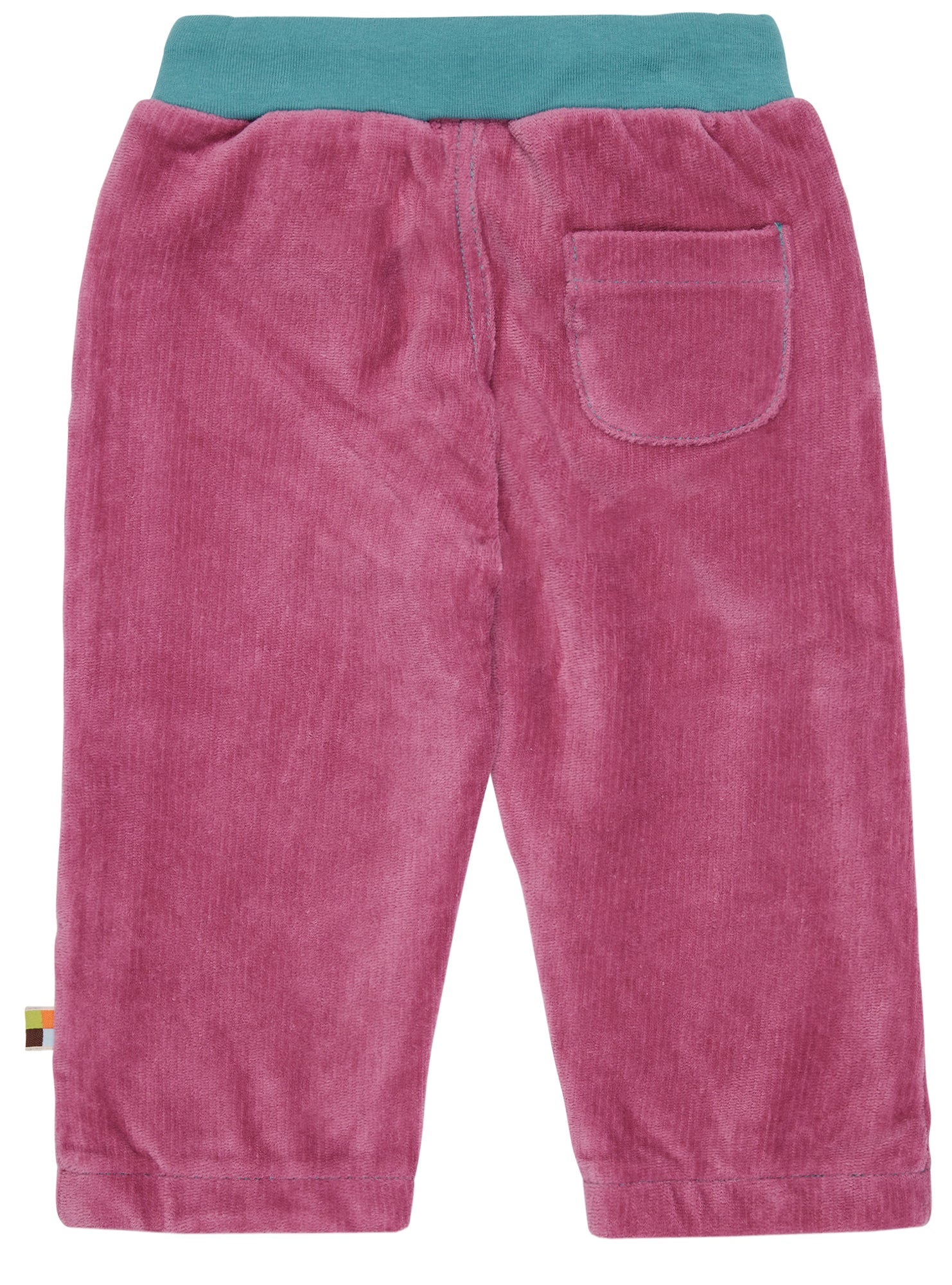 Stretch corduroy pants with a warm jersey lining. Soft elastic waistband with drawstring. Front pockets. Back pocket on the right back. Logo label with flag on the left side seam. Made in Portugal. Washable at 30°C.