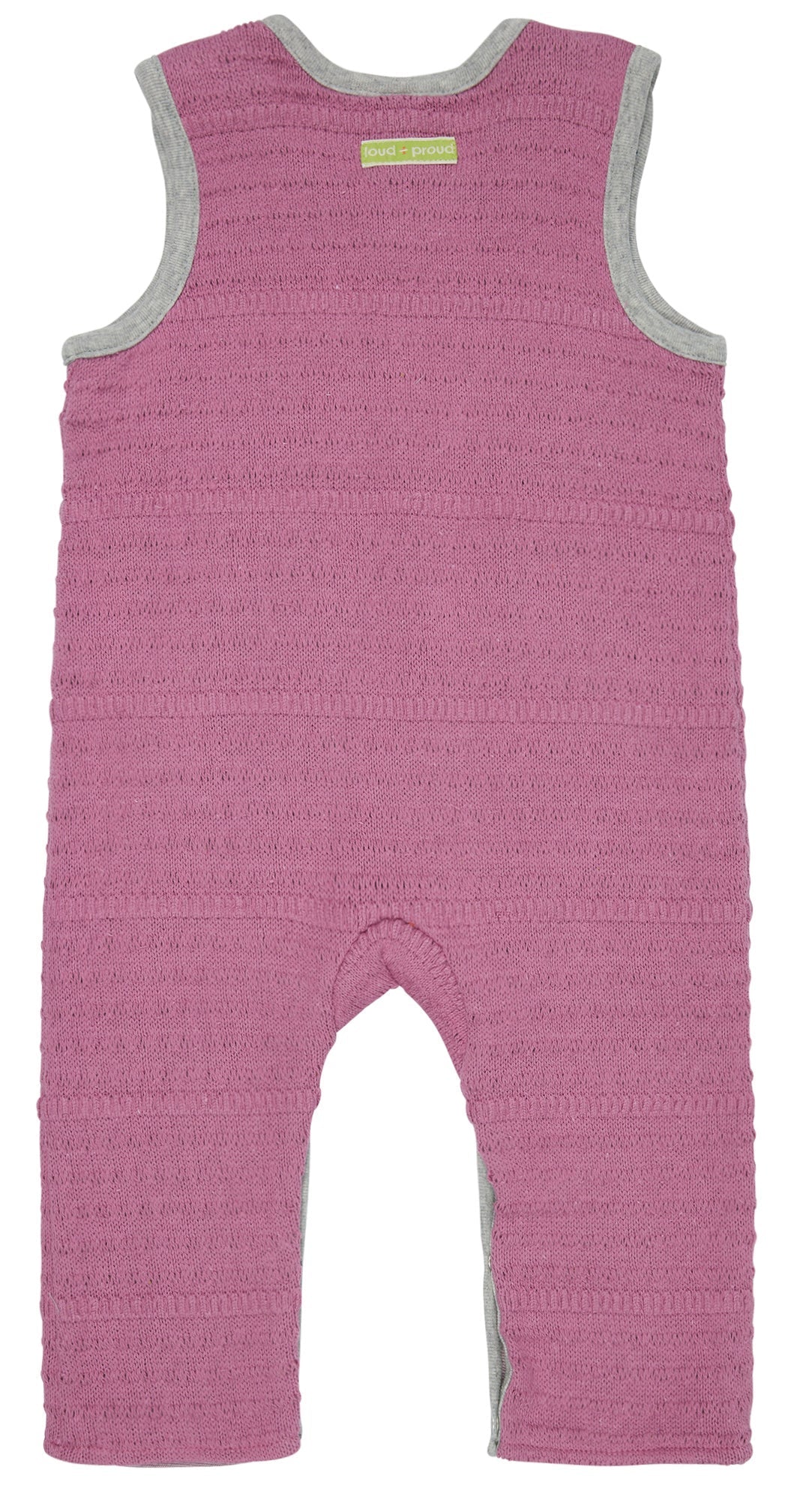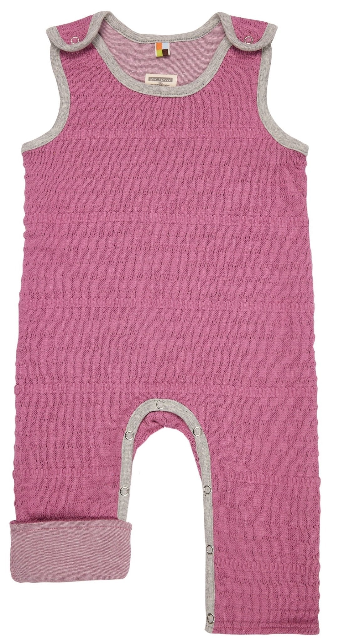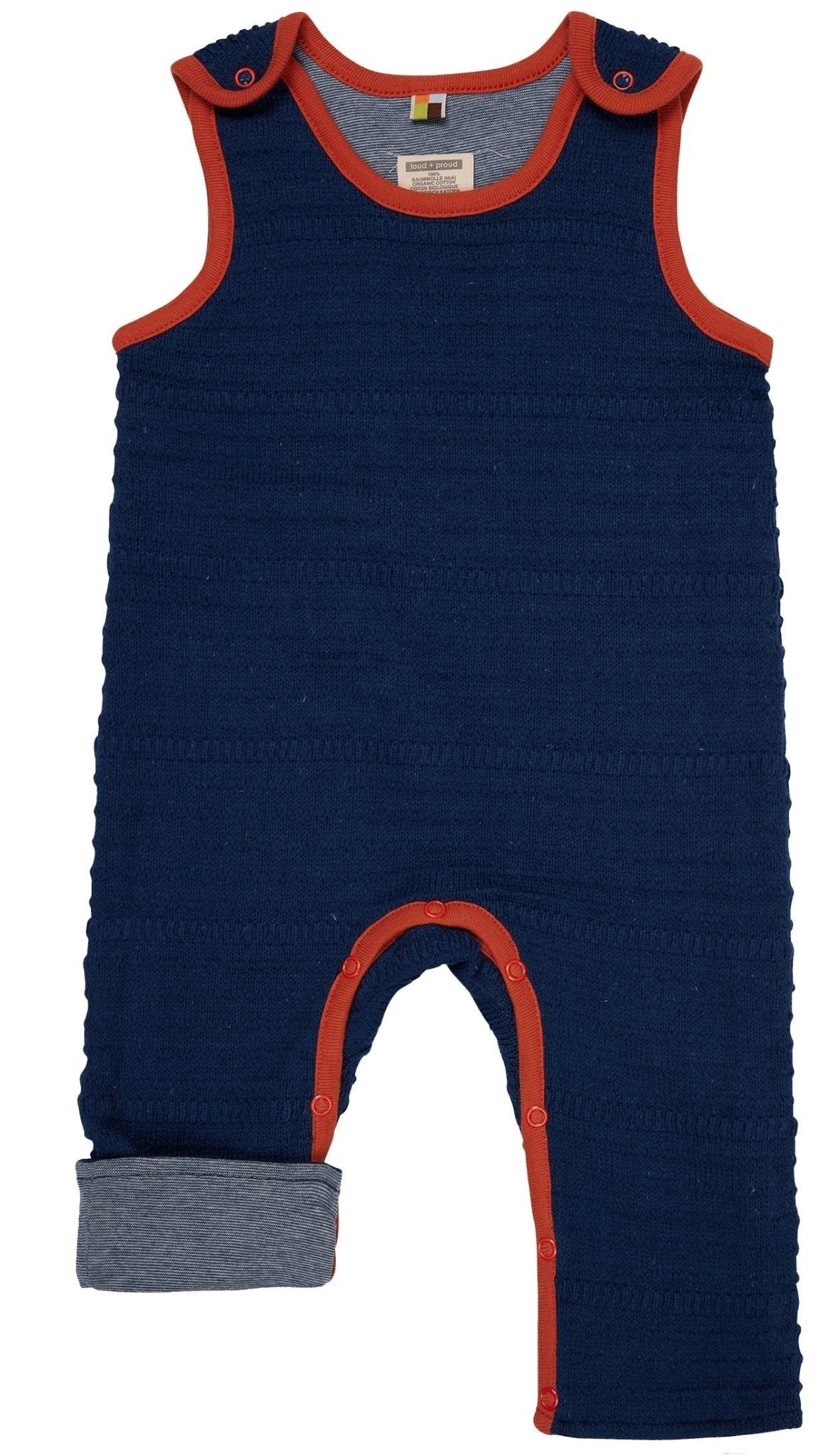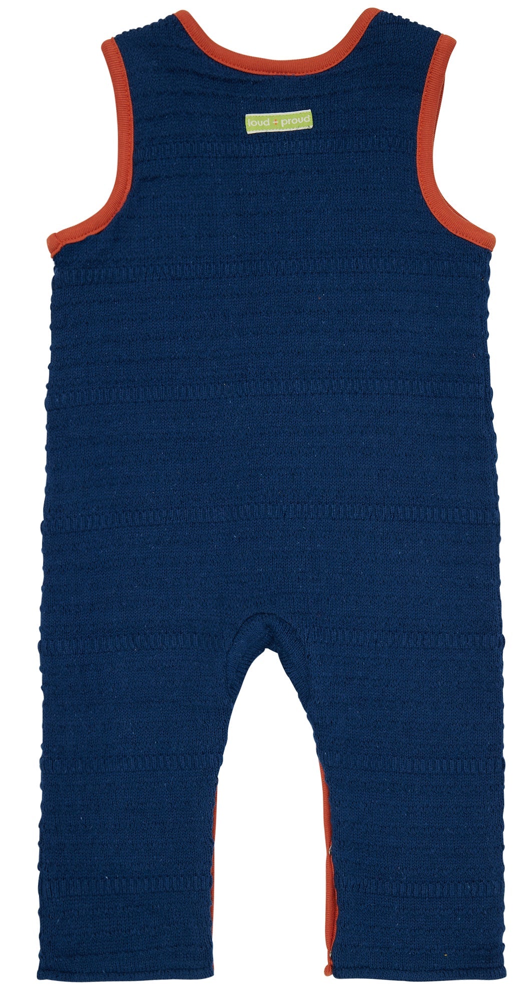 Reversible romper made of textured knit. The inside is made of finely striped jersey. For easy changing, the crotch seam can be opened and closed with nickel-free snaps. Logo label with flag on the side seam. Washable at 30°C. Made in Portugal.