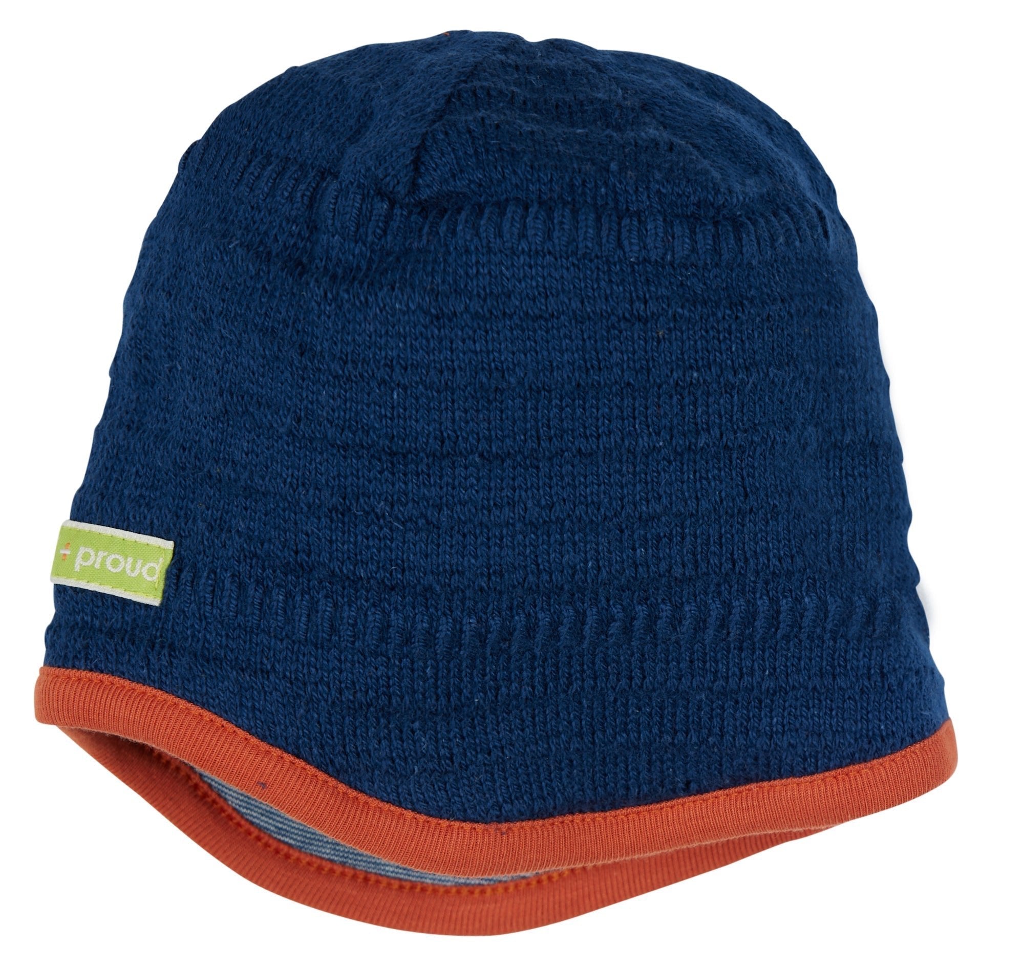 Gorro reversible de punto estructurado. El interior es de jersey de finas rayas. El borde está ribeteado en color de contraste. Etiqueta con logo en la parte delantera, etiqueta en la parte trasera. Fabricado en Portugal. Lavable a 30°C.