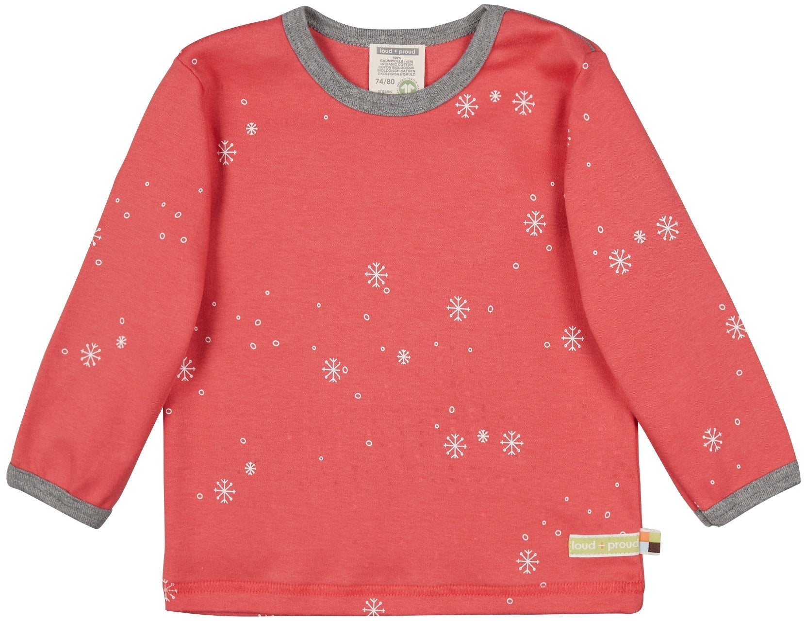 Chemise en interlock doux avec imprimé. L'encolure et les poignets sont bordés d'une couleur contrastante. Des boutons-pression dissimulés sur l'épaule gauche sont inclus jusqu'aux tailles 86/92. Des drapeaux ornent la couture latérale. Fabriquée en Hongrie. Lavable à 30 °C.
