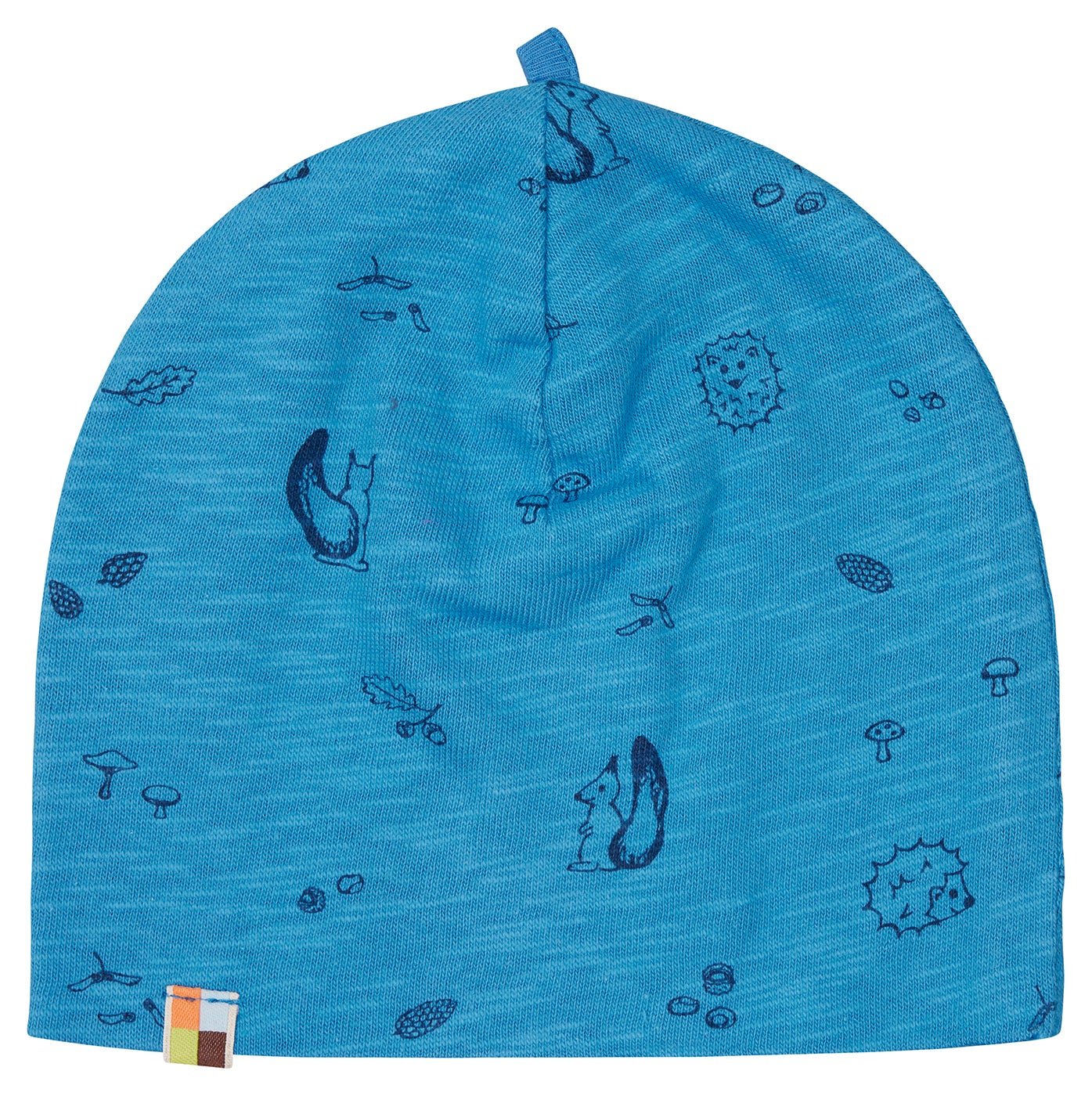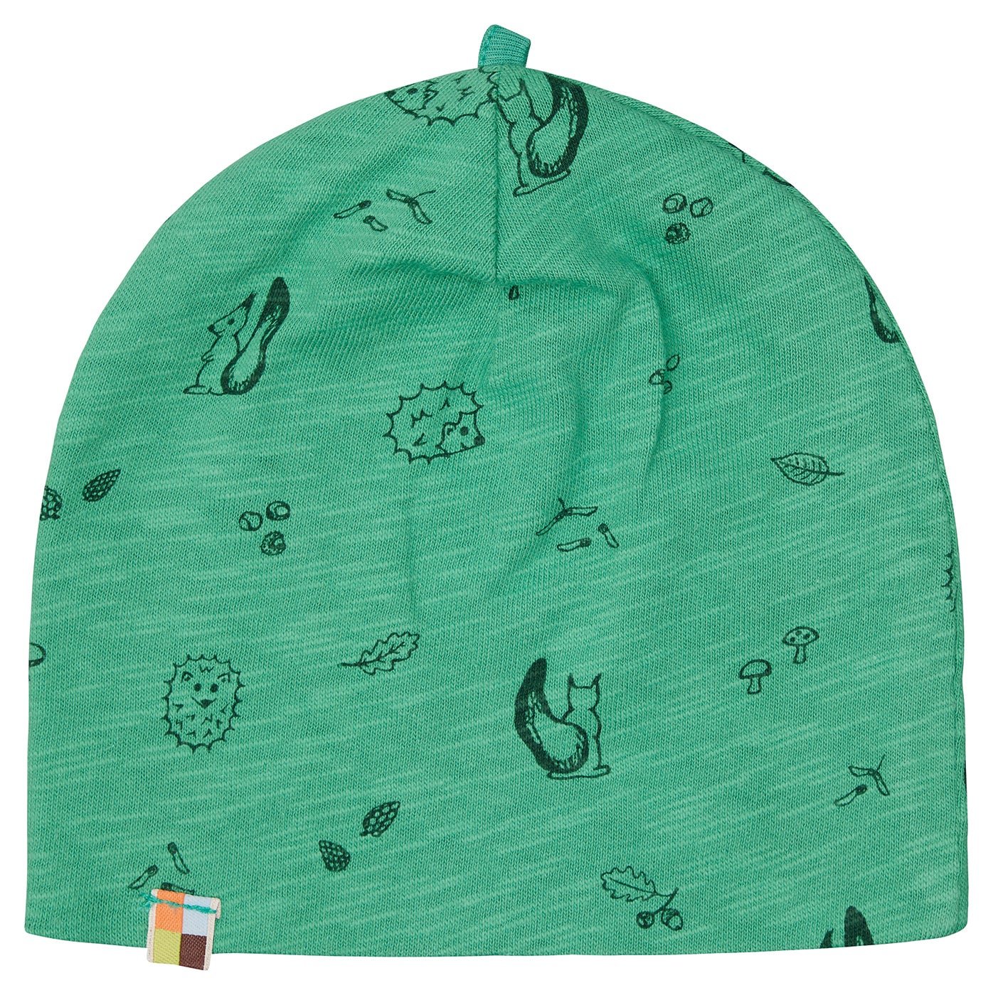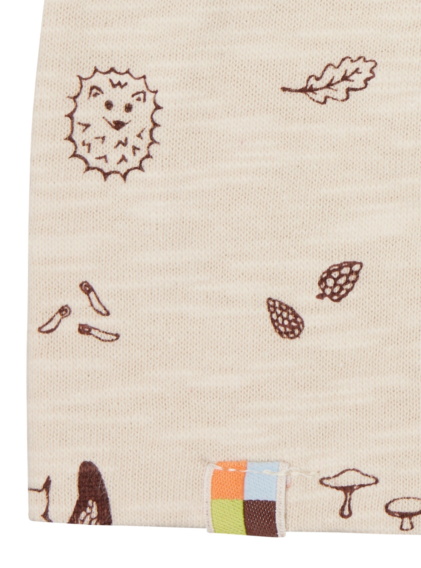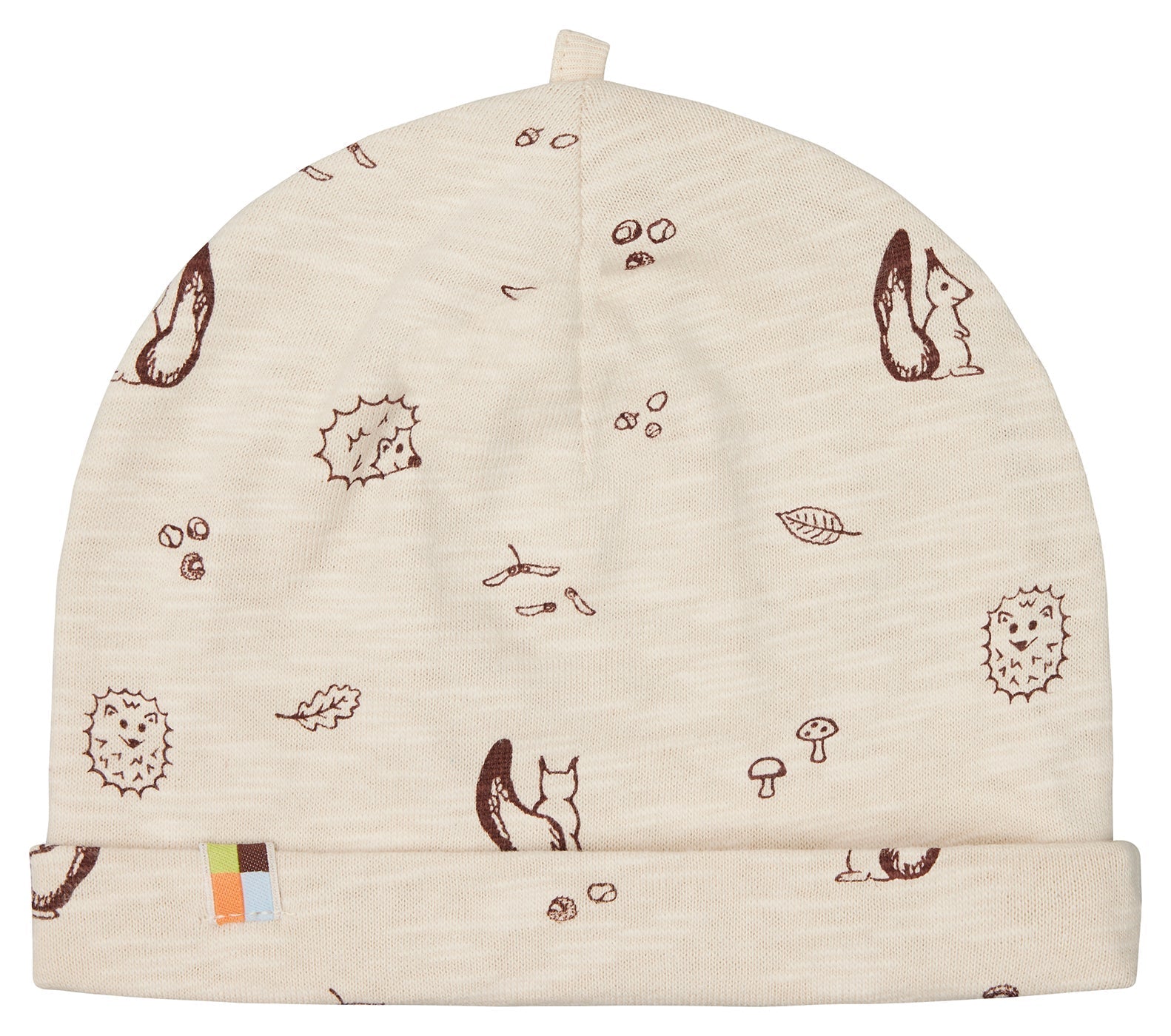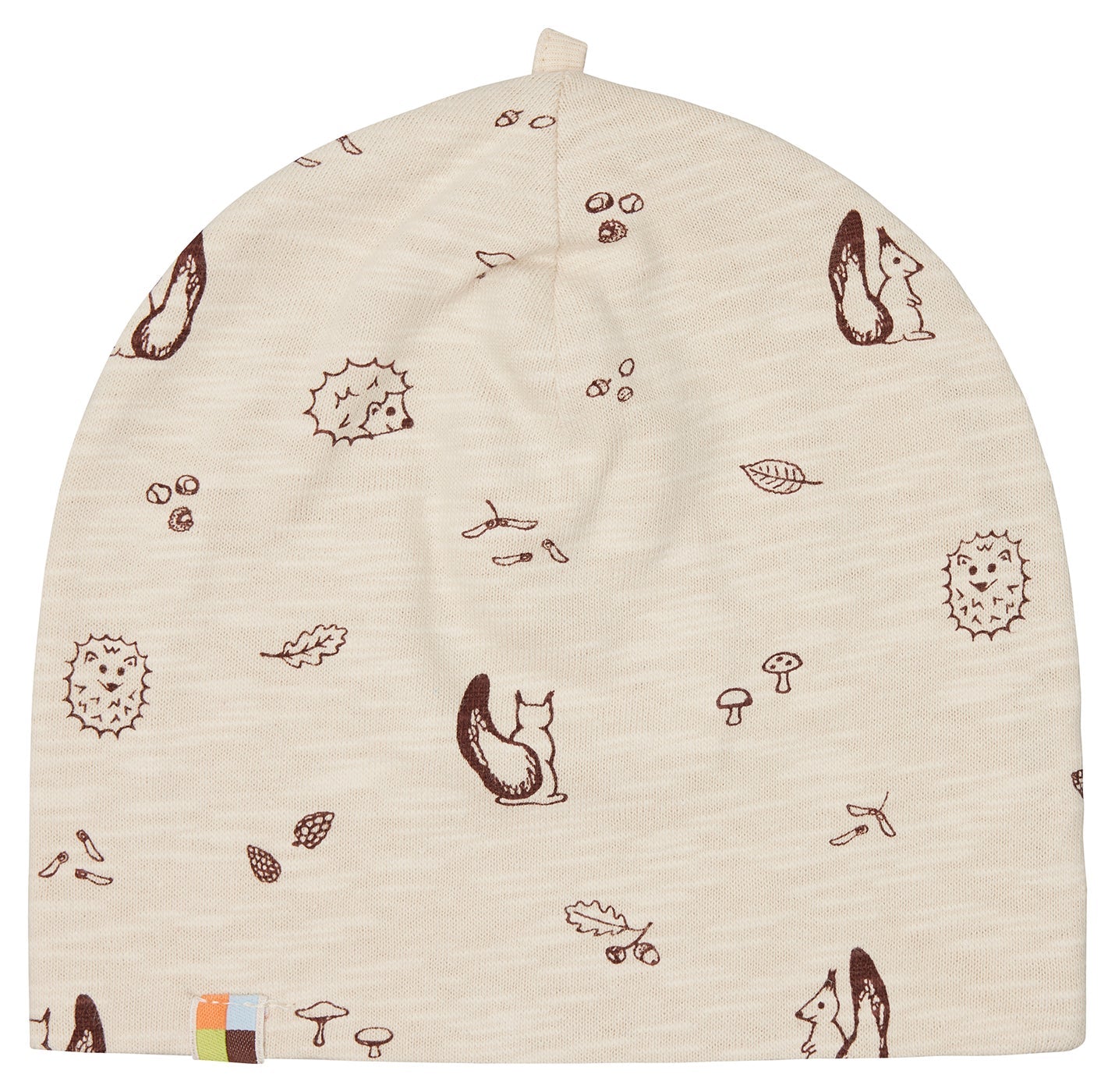 Mütze aus Slub Jersey mit leicht strukturierter Oberfläche. Dezenter Ton-in-Ton Allover-Druck mit Wald-Motiv. Mit Kante zum Umklappen. Fähnchen an der Kante. Made in Hungary. Waschbar bei 30°C