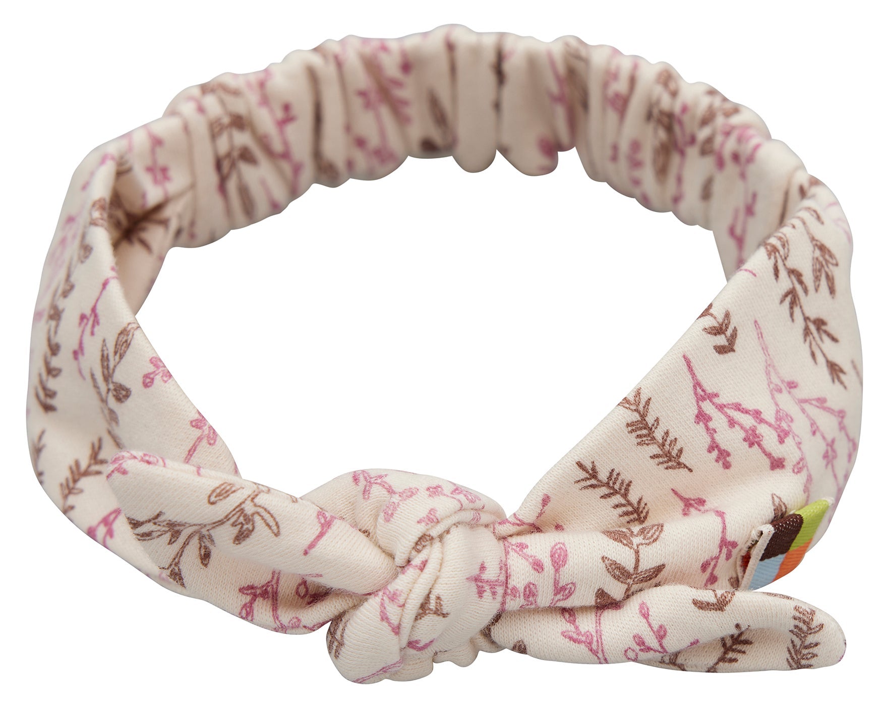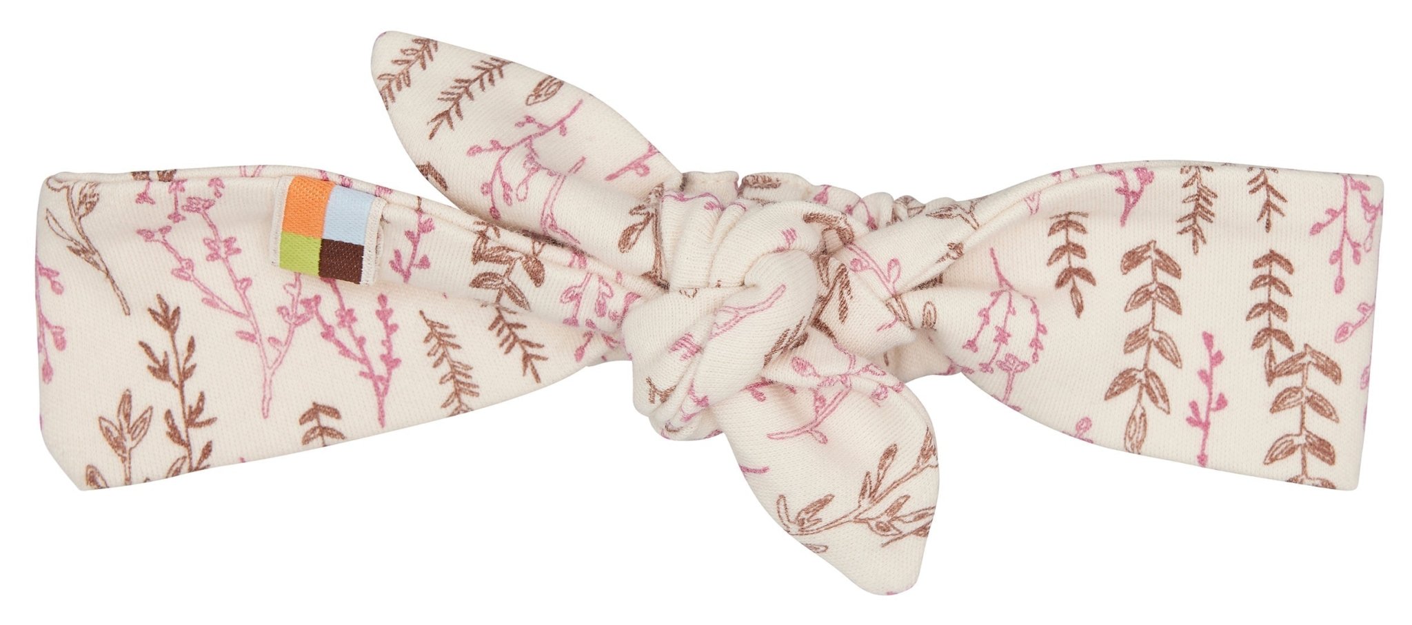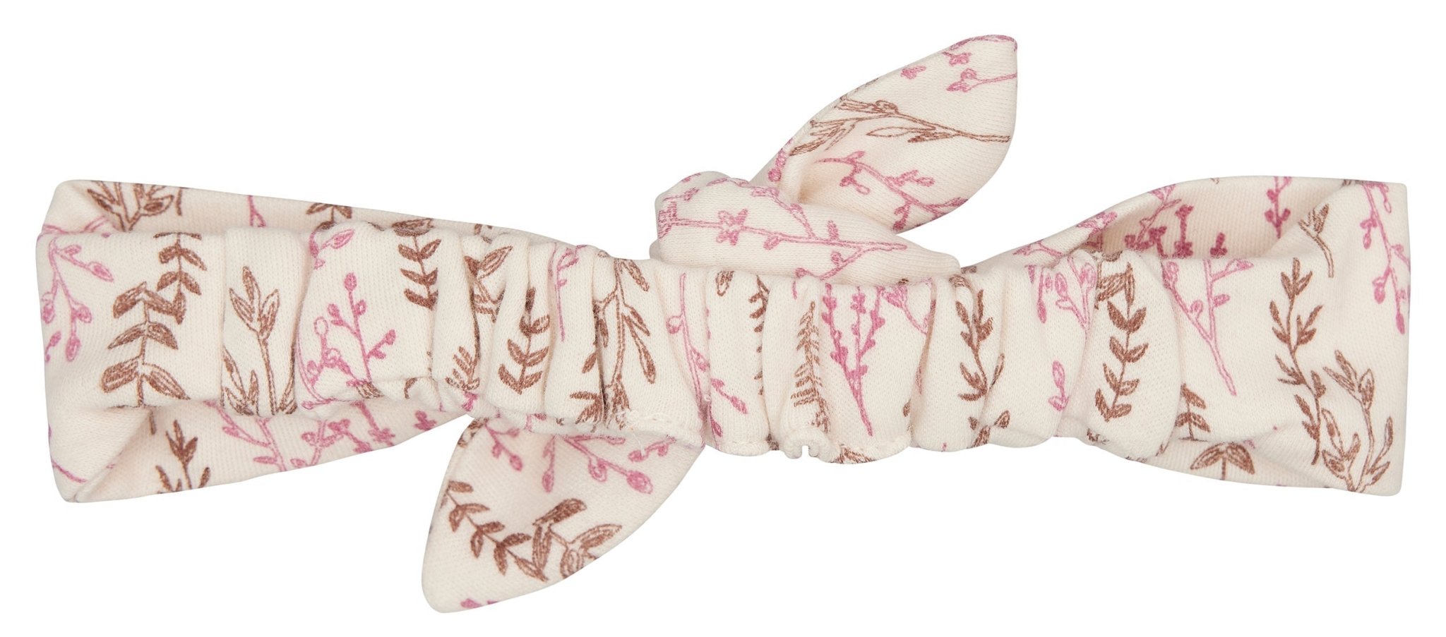 Haarband aus feinem Interlock mit Druck. Hinten mit Gummi. Seitlich mit Fähnchen. Made in Türkiye. Waschbar bei 30°C